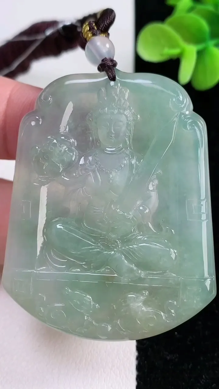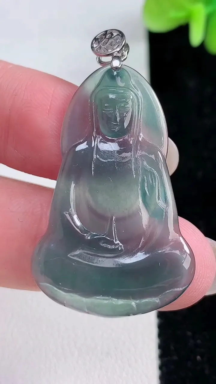 天然A货翡翠925银蓝水观音菩萨吊坠,尺寸46-24.5-6,重:4.02g 12月14日