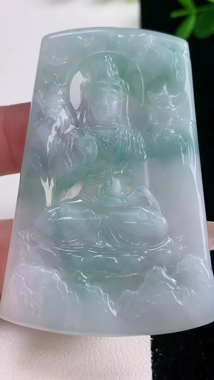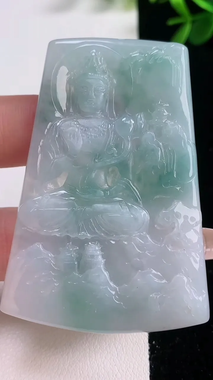 天然A货翡翠飘花山水大势至菩萨吊坠,尺寸62.3-42.7-5.1,重量:30.16g 12月21日