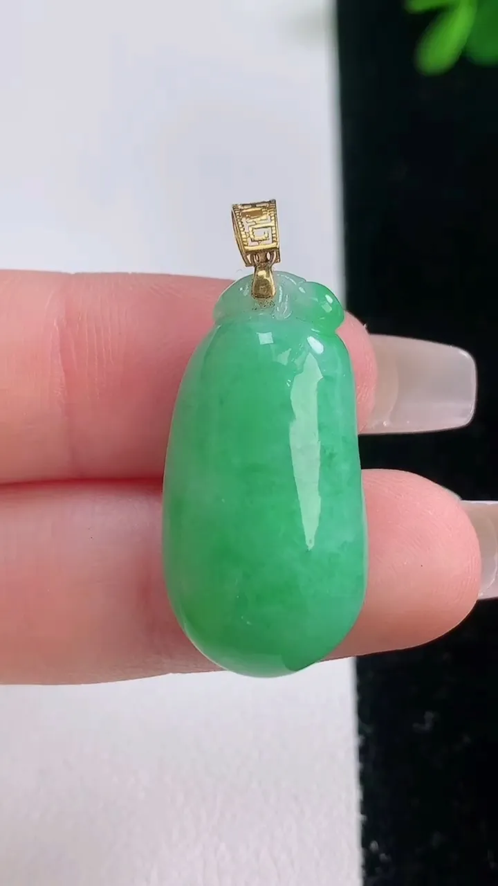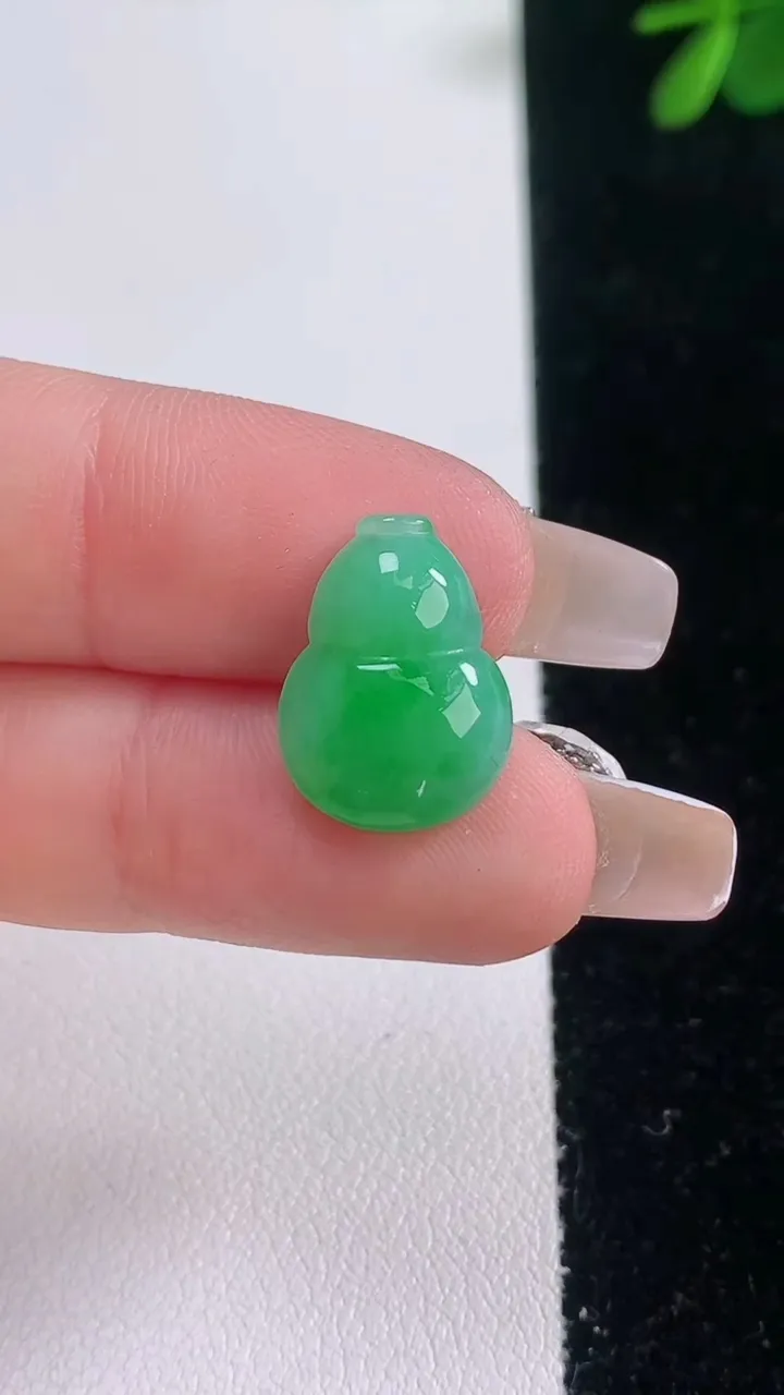 天然A货翡翠葫芦镶嵌件,尺寸15.8-11.7-4.7,重量:1.42g 12月21日