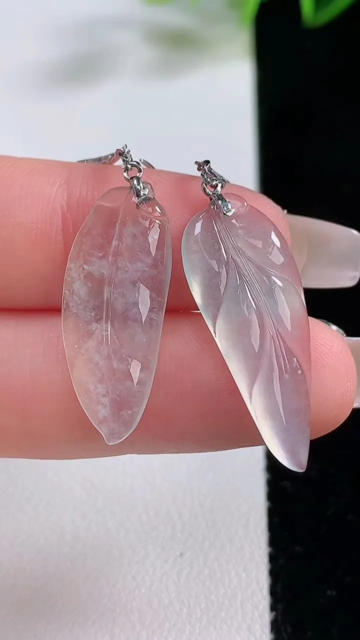 天然A货翡翠种白冰金枝玉叶 叶子耳坠,尺寸28.4-10.8-3.5,重量:3.33g' 12月22