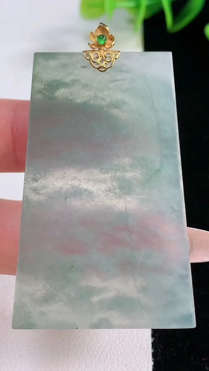 天然A货翡翠种飘花原石吊坠,尺寸19.4-16.8-8,重量:5.13g 12月22日