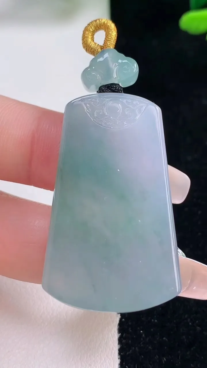 冰种心心如意吊坠、真金真钻镶嵌,种水好,玉质细腻 .裸石尺寸 36.5*20.8*5.3