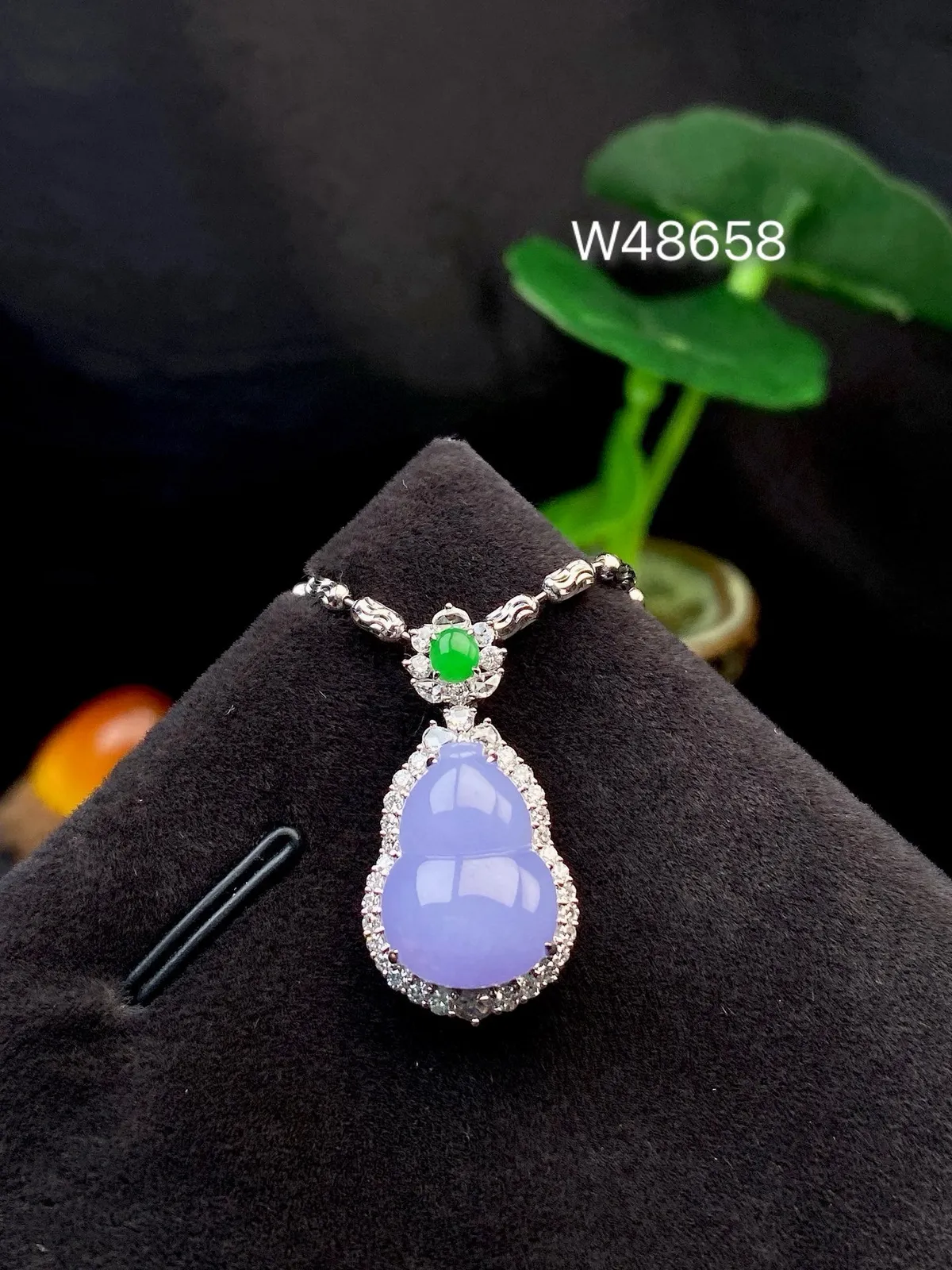 【冰种紫葫芦吊坠】质地细腻,冰透纯净,唯美漂亮,珍藏品质,18K金钻镶嵌,裸石尺寸14.4*10.4