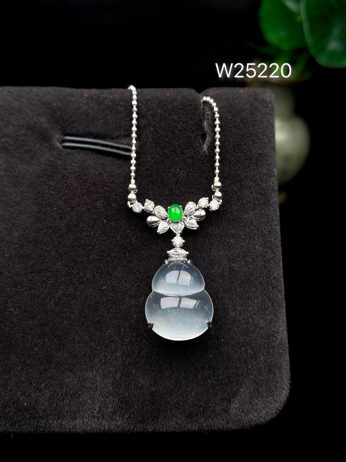 【冰种葫芦吊坠】质地细腻清爽,荧光感强烈,起刚光强烈,18K金钻镶嵌,裸石尺寸13.5*11.2*5