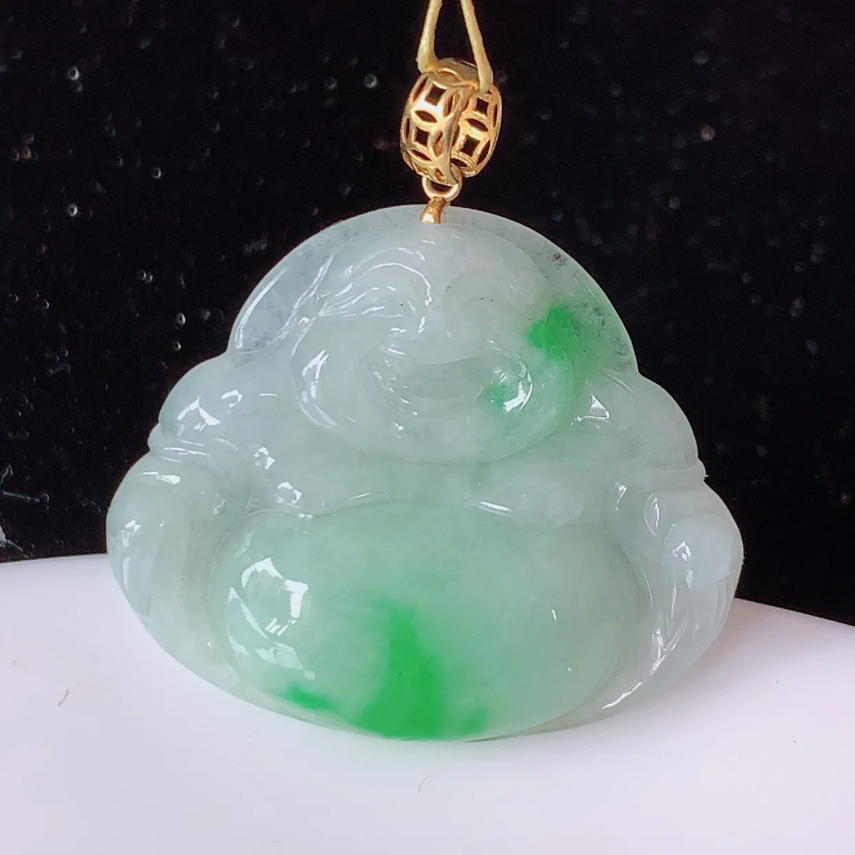 天然A货翡翠种白冰佛公吊坠,尺寸28.2-31.3-5.4,重量:7.79g 12月12日