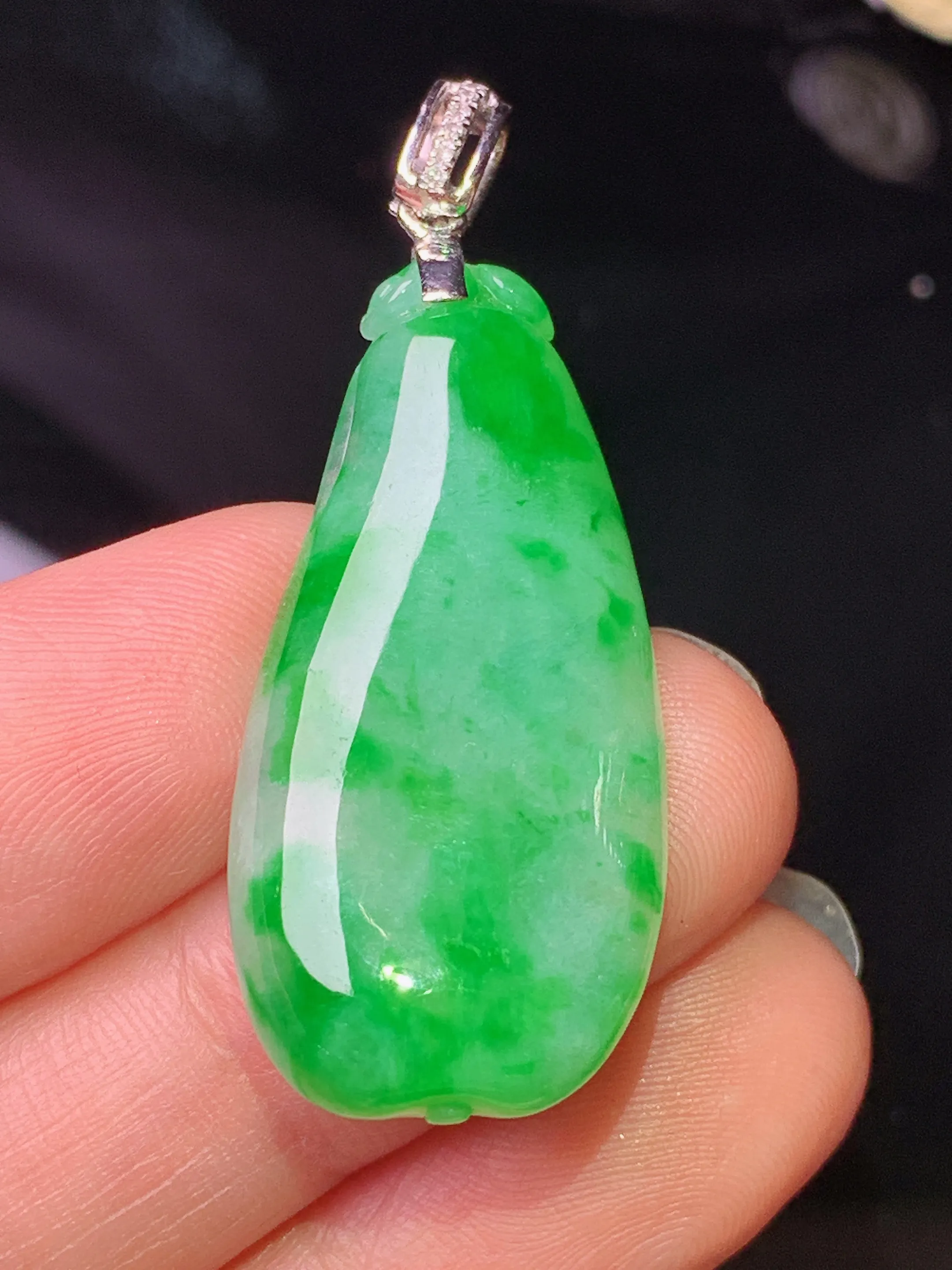 18k金镶嵌翠绿福瓜吊坠 玉质细腻 色泽清新艳丽 整体尺寸42*16.3*5