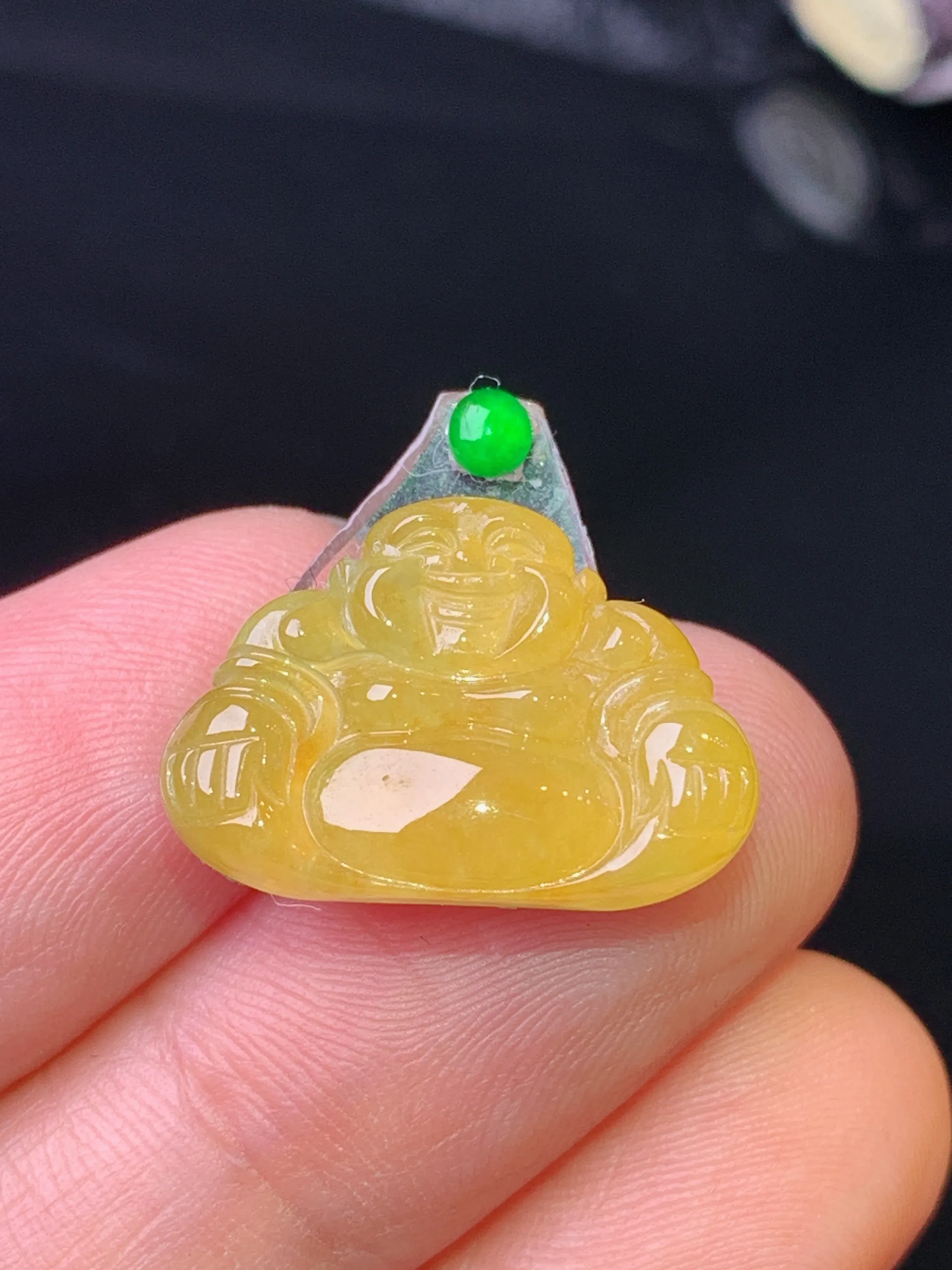 镶嵌 黄翡佛公吊坠 玉质细腻 色泽清新艳丽 整体尺寸13.5*18*4.5