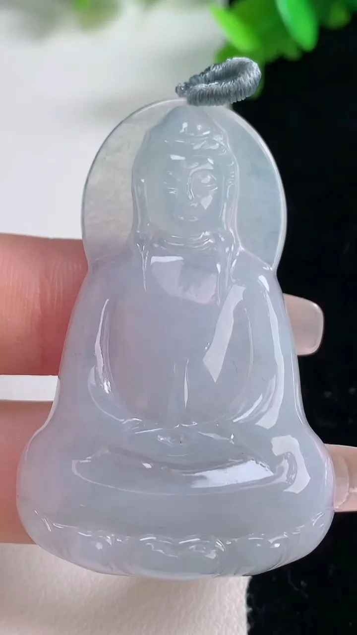天然A货翡翠种白冰普贤菩萨吊坠,尺寸64.4-43.4-5.3,重量:41.50g 1月5日