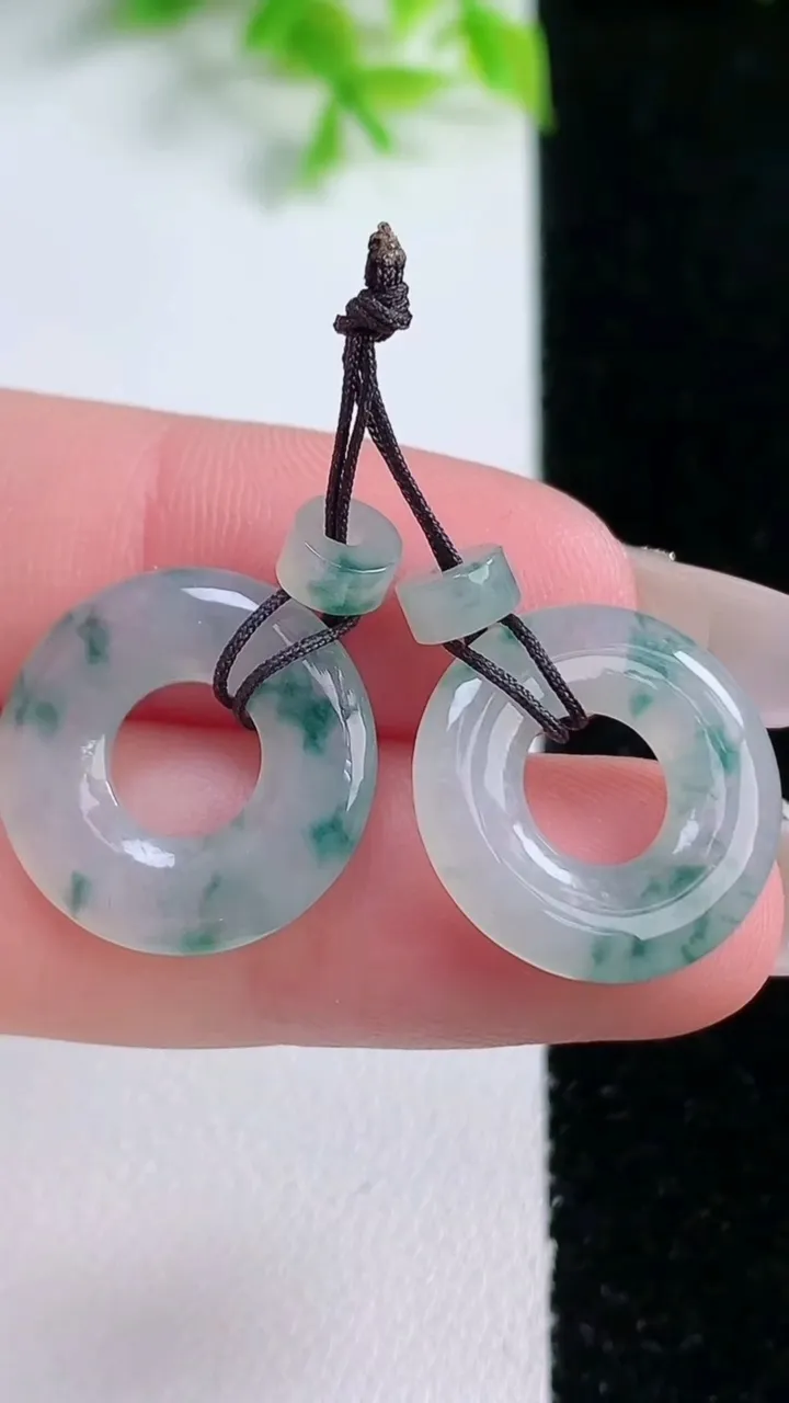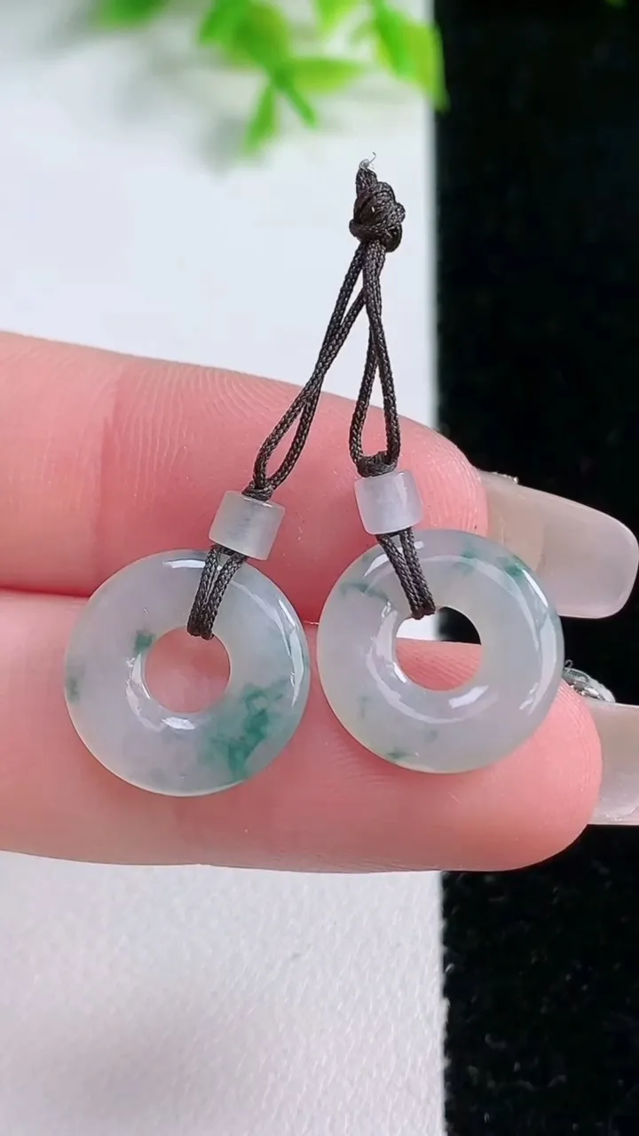 天然A货翡翠飘花平安环吊坠一对,尺寸17.4-2.7,重量:3.86g 1月16日