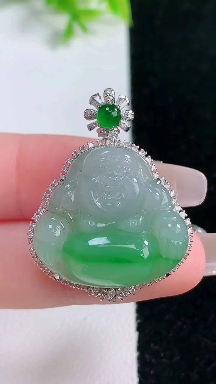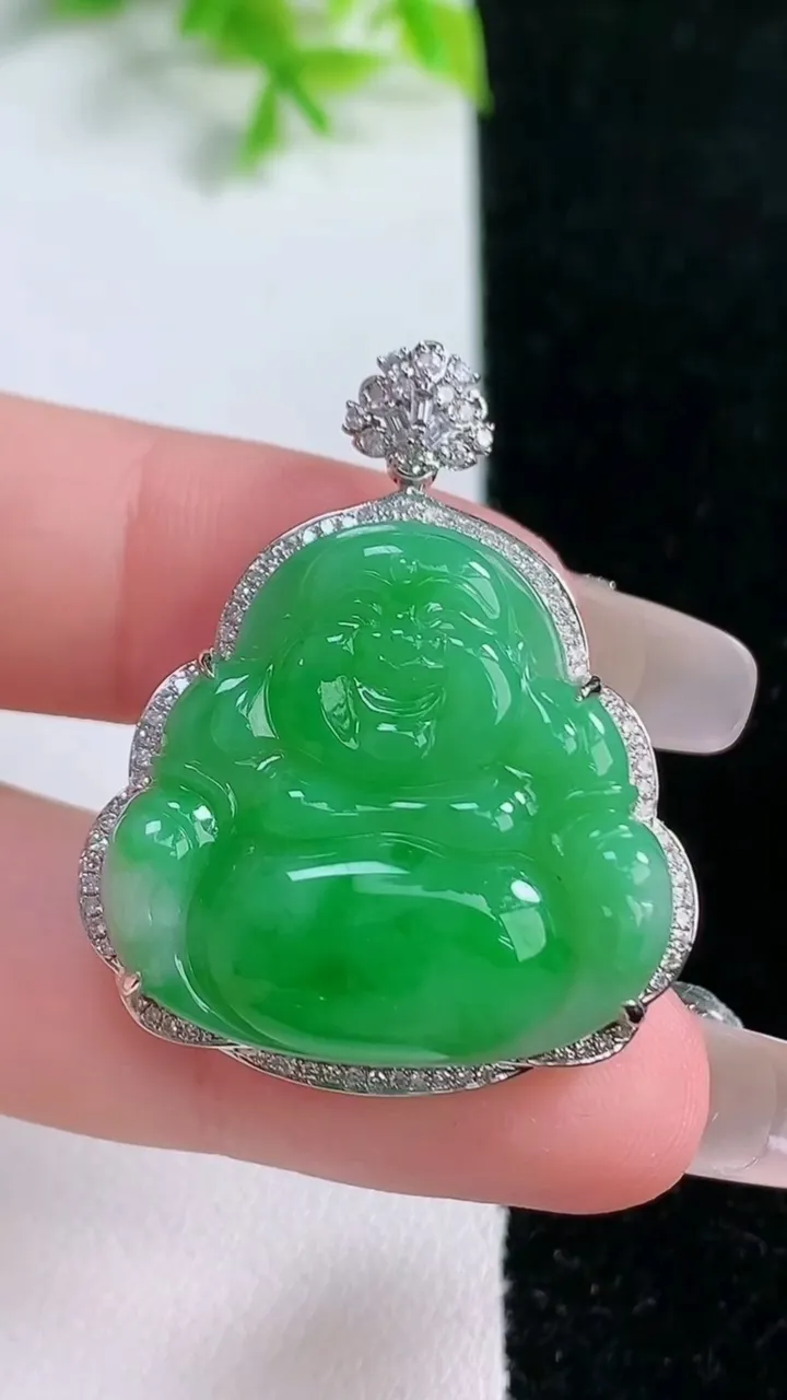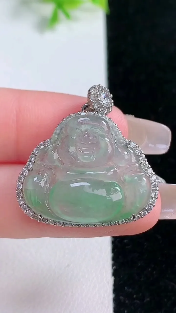 天然A货翡翠佛公吊坠,尺寸33.8-26.6-10.7,裸石22-24.3重量:8.90g 1月16