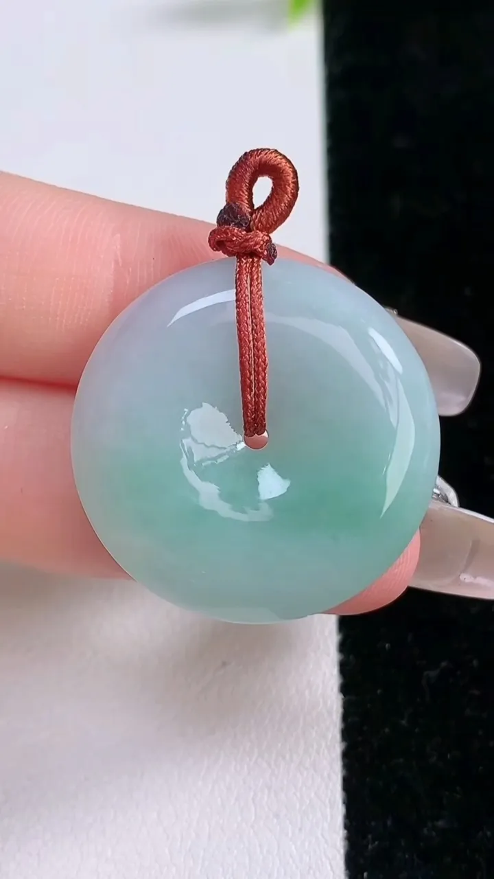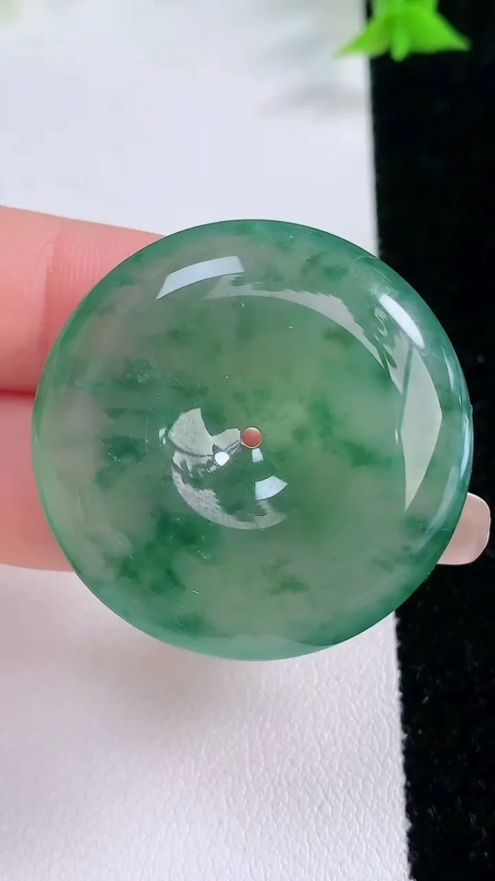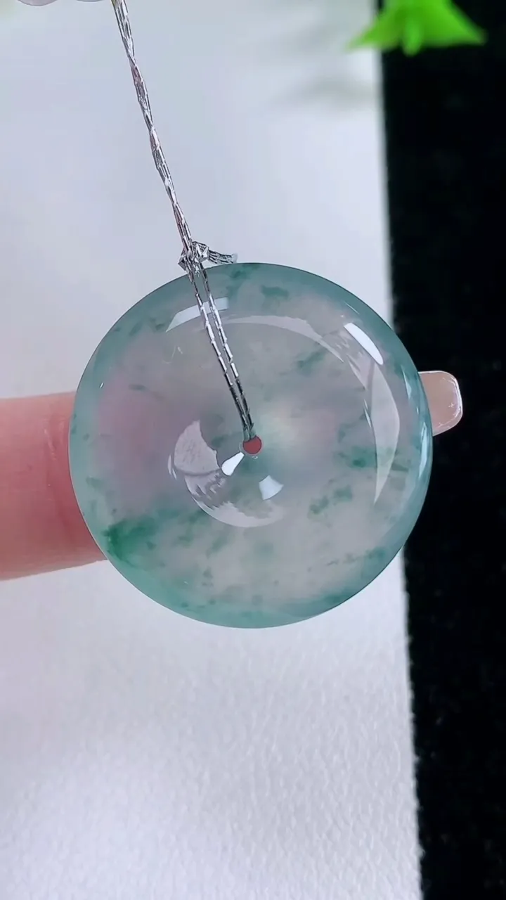 天然A货翡翠种飘花平安扣吊坠,尺寸34.2-7.7,重量:18.40g 1月27日