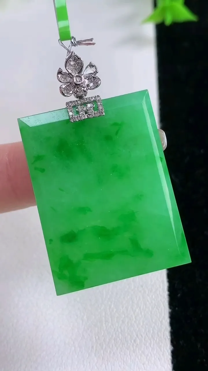 天然A货翡翠无事牌吊坠,尺寸32-24.2-3.6,重量:10.57g 1月27日