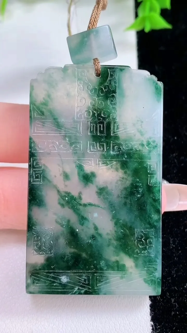 天然A货翡翠种飘花仿古无事牌吊坠,尺寸56-33-5.5,重量:36.00g 1月27日