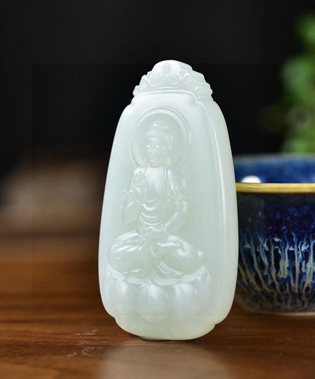 天然和田玉.羊脂玉.阿弥陀佛.玉牌.属狗和属猪的守护神.玉质油润.雕琢精美.阿弥陀佛是佛教中慈悲与智