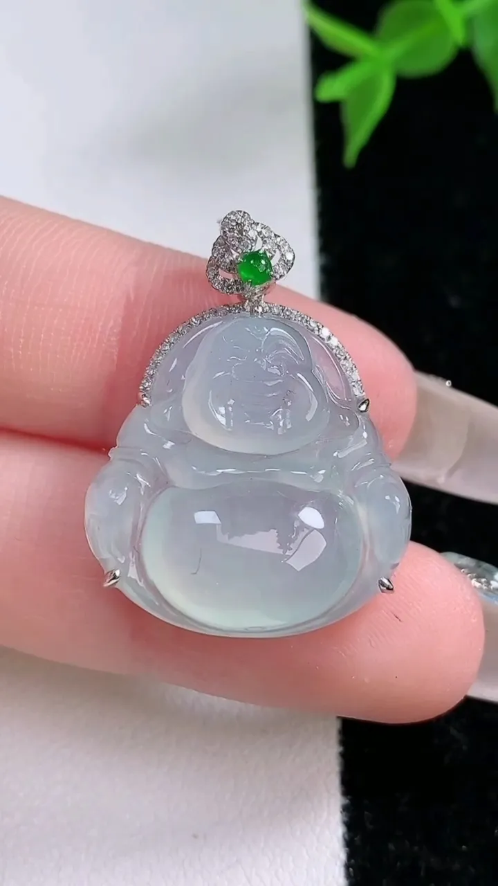 18k金钻镶嵌冰种佛公吊坠 玉质细腻 色泽艳丽清新 整体尺寸36.2*29.2*12.5