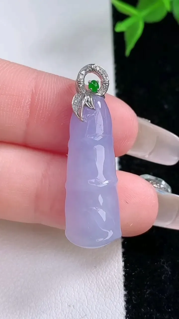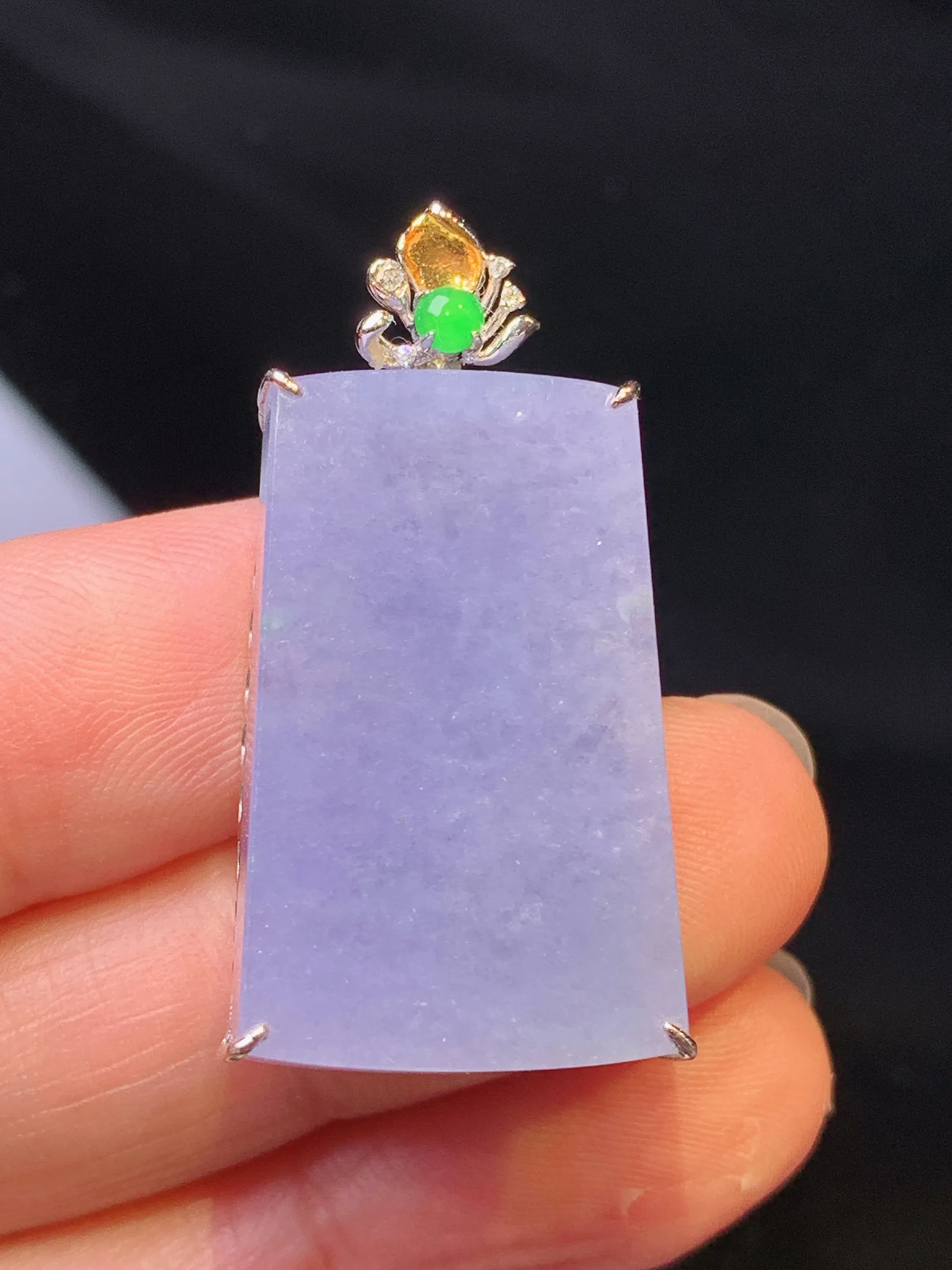 18k金钻镶嵌紫罗兰无事牌吊坠 玉质细腻 色泽艳丽清新 整体尺寸34*17*7.2