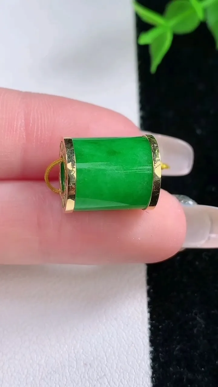 冰种飘花福豆 水润饱满 配金扣