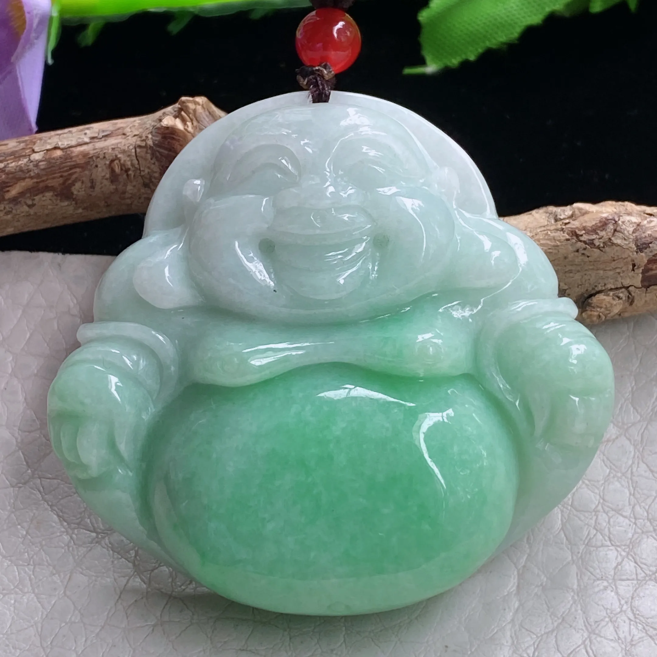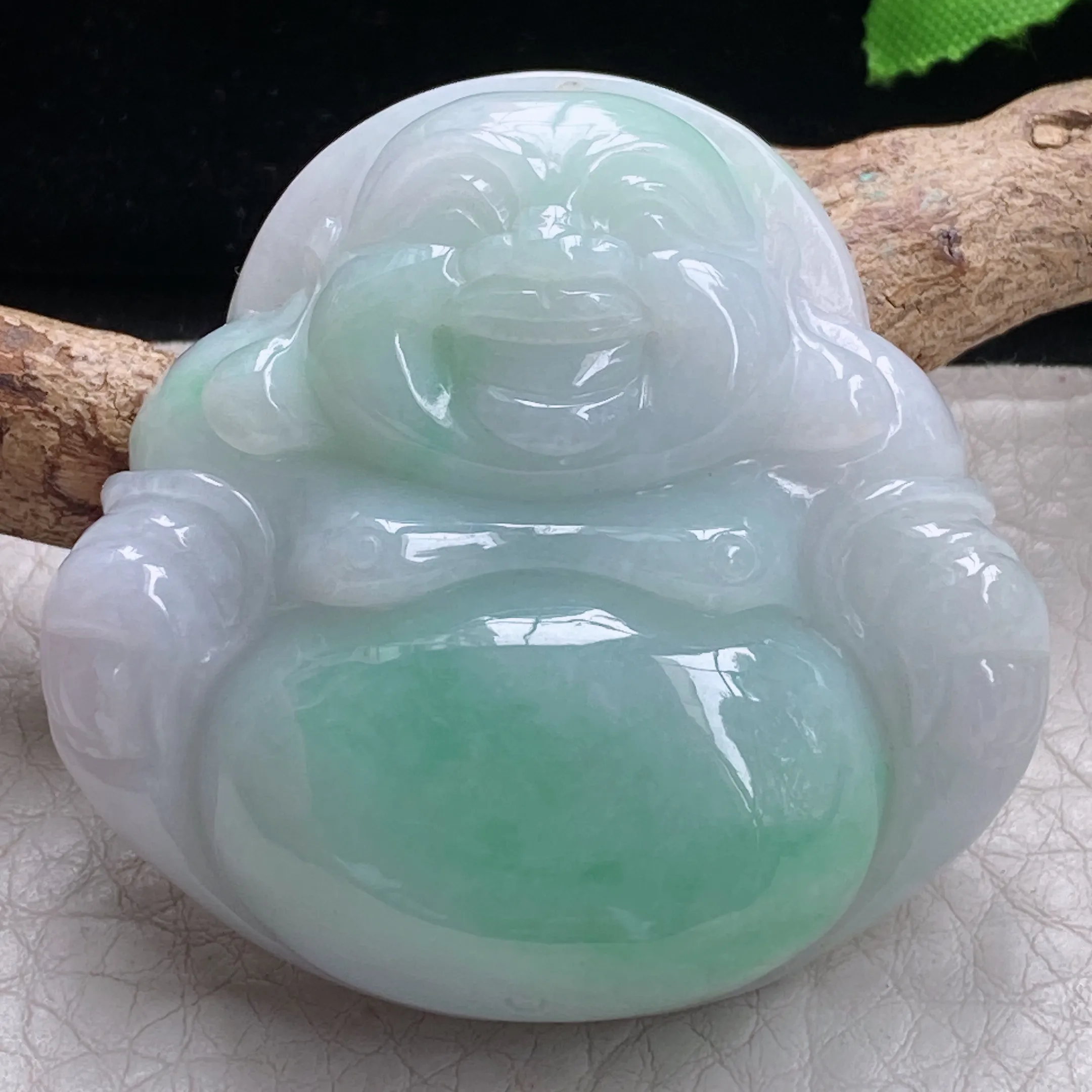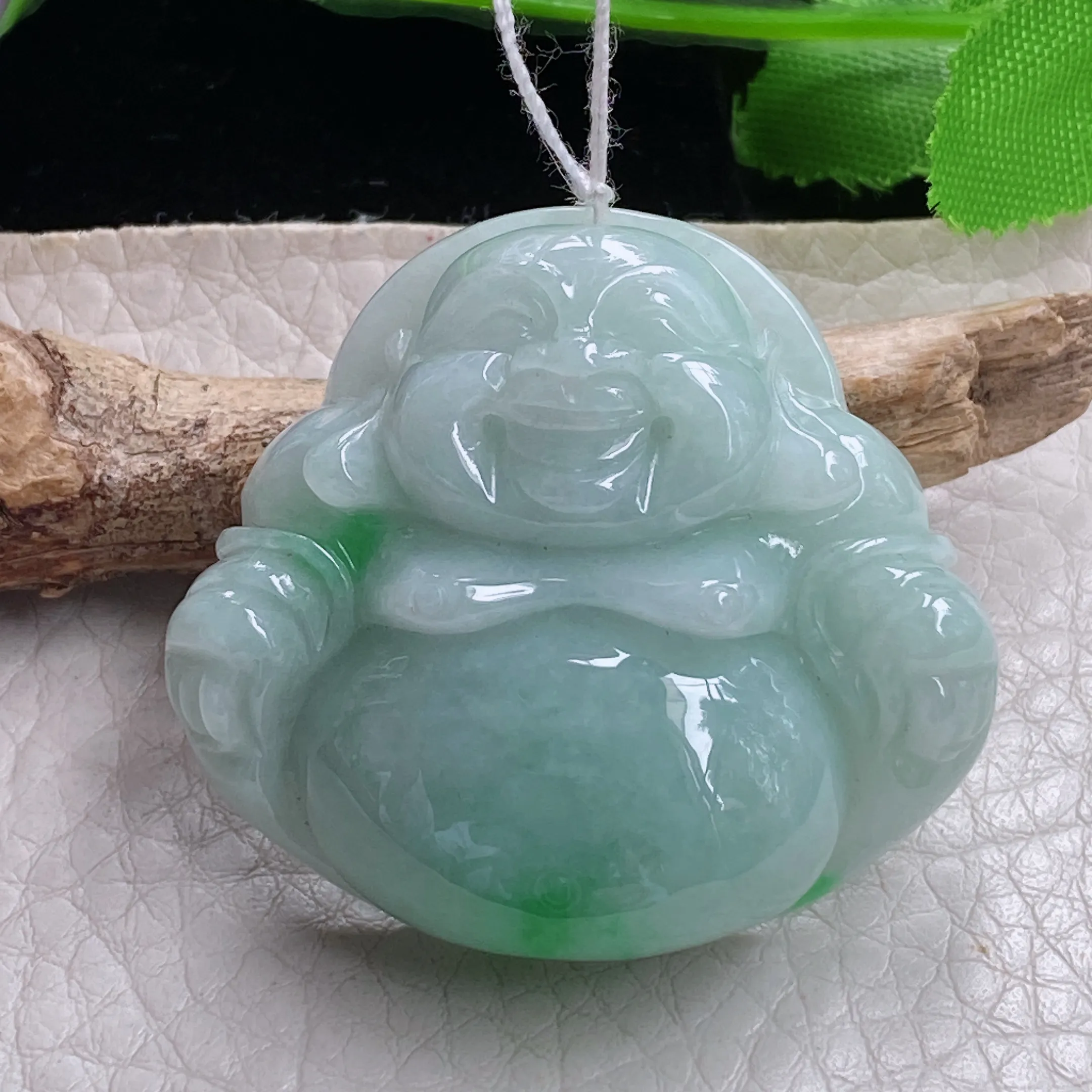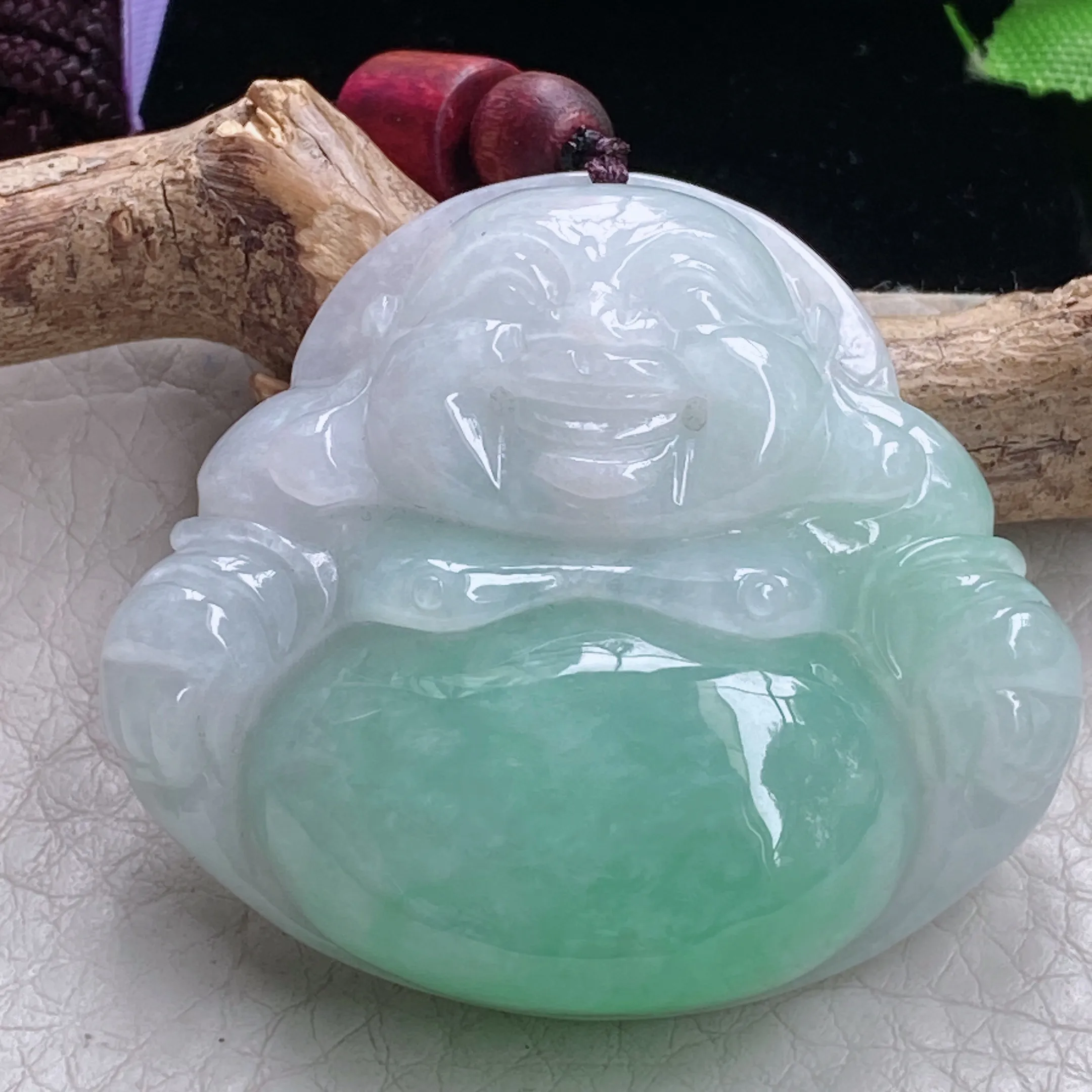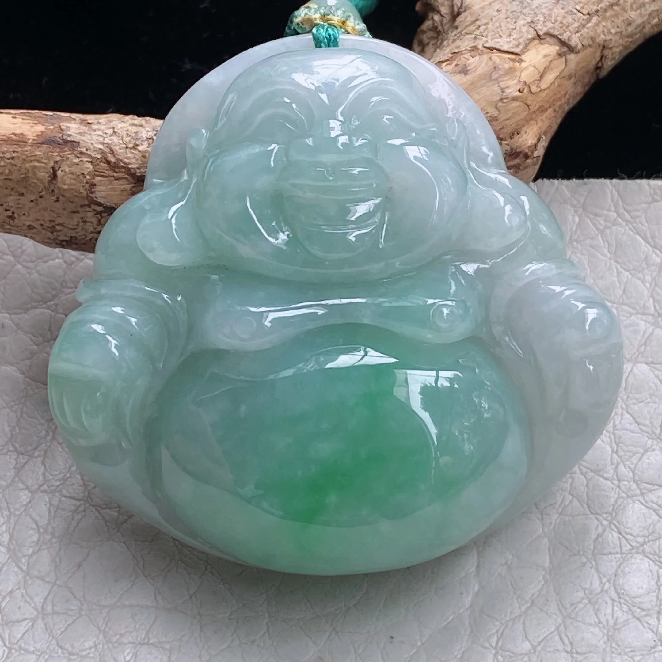 zen自然光45.8*47.8*14天然缅甸玉翡翠胶感大佛公 大肚佛玉吊坠