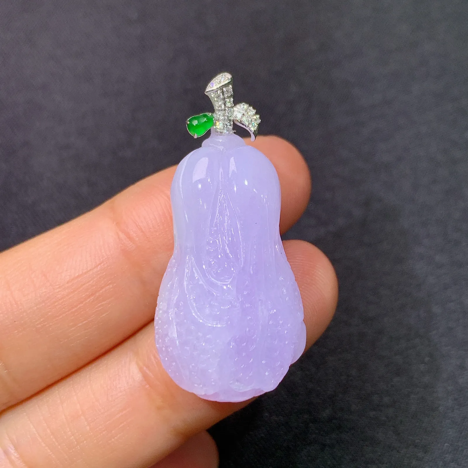 淡紫罗兰白菜吊坠,18k金钻镶嵌,颜色鲜艳,温润细腻,Sk整体尺寸34.9*15.7*10.1