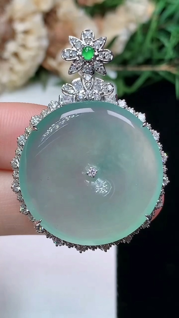 天然A货翡翠平安扣吊坠,尺寸40.7-29.3-8.8,裸石25.6,重量:10.45g 4月16日