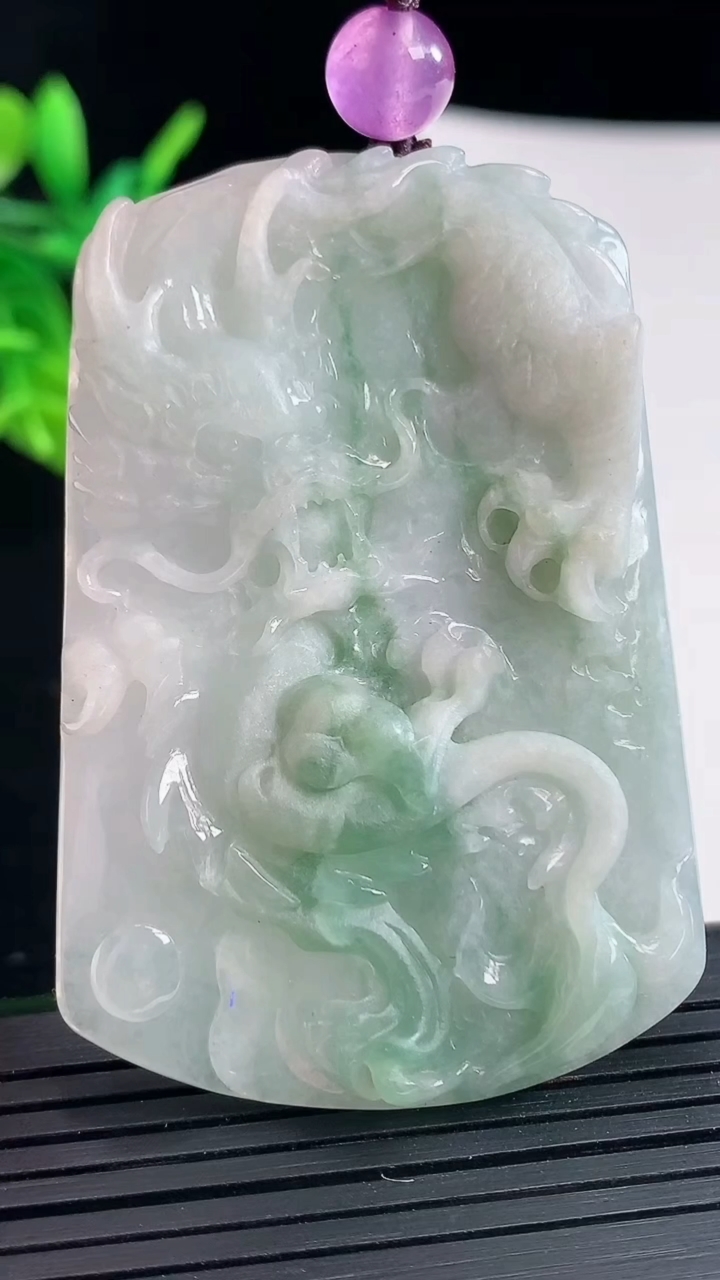 18k金钻镶嵌紫罗兰貔貅吊坠 玉质细腻 色泽艳丽清新 水润亮眼 整体尺寸33.5*20.5*13.8