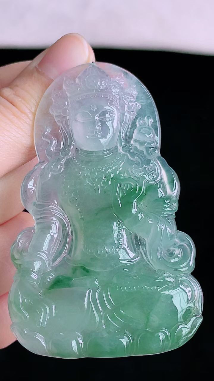 【翡翠名称】18K金豪华镶钻冰飘花佛公吊坠 【翡翠尺寸】含金36.2/26.7/8mm 【翡翠描述】