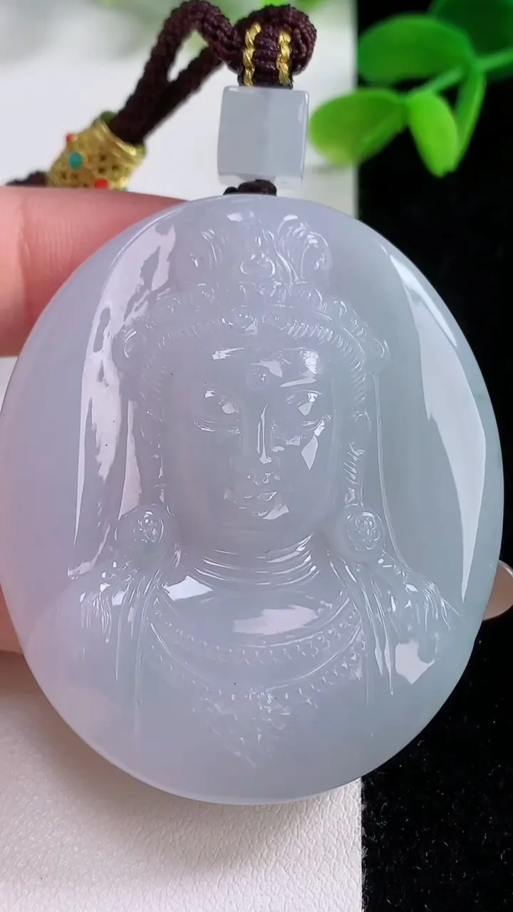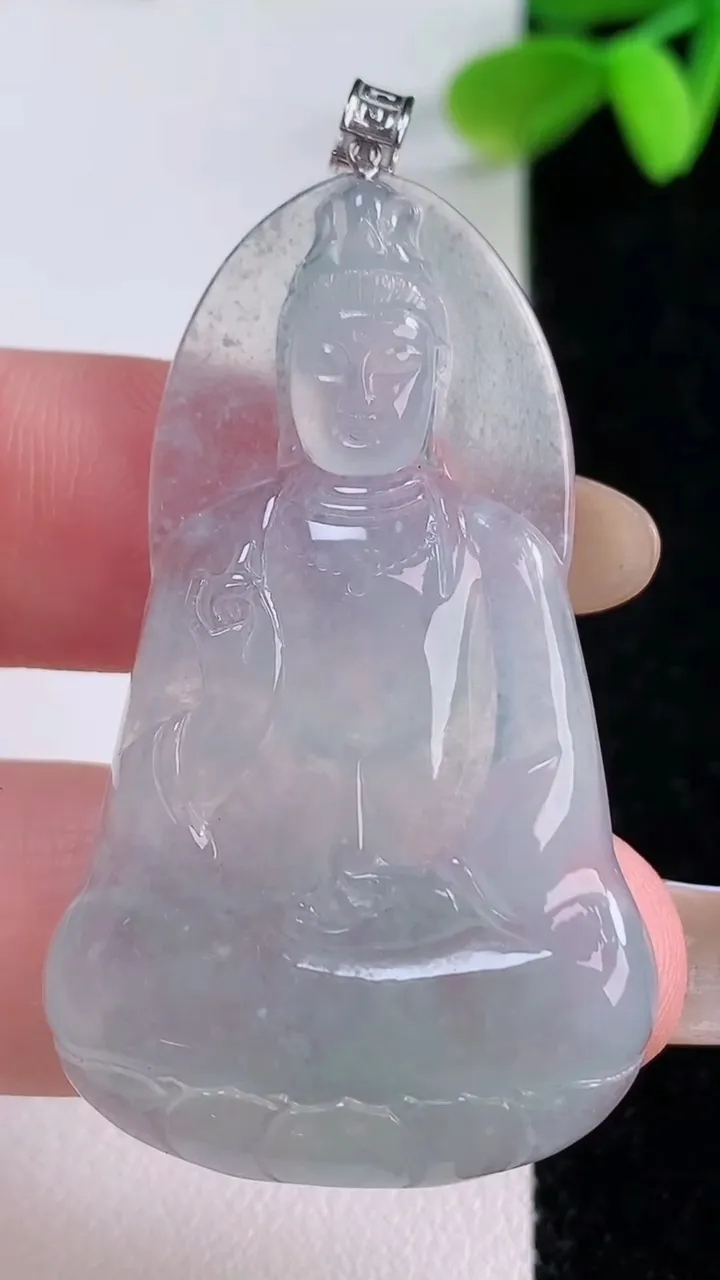 天然A货翡翠观音菩萨吊坠,尺寸45.3-27.4-4.6,重量:9.95g 11月21日