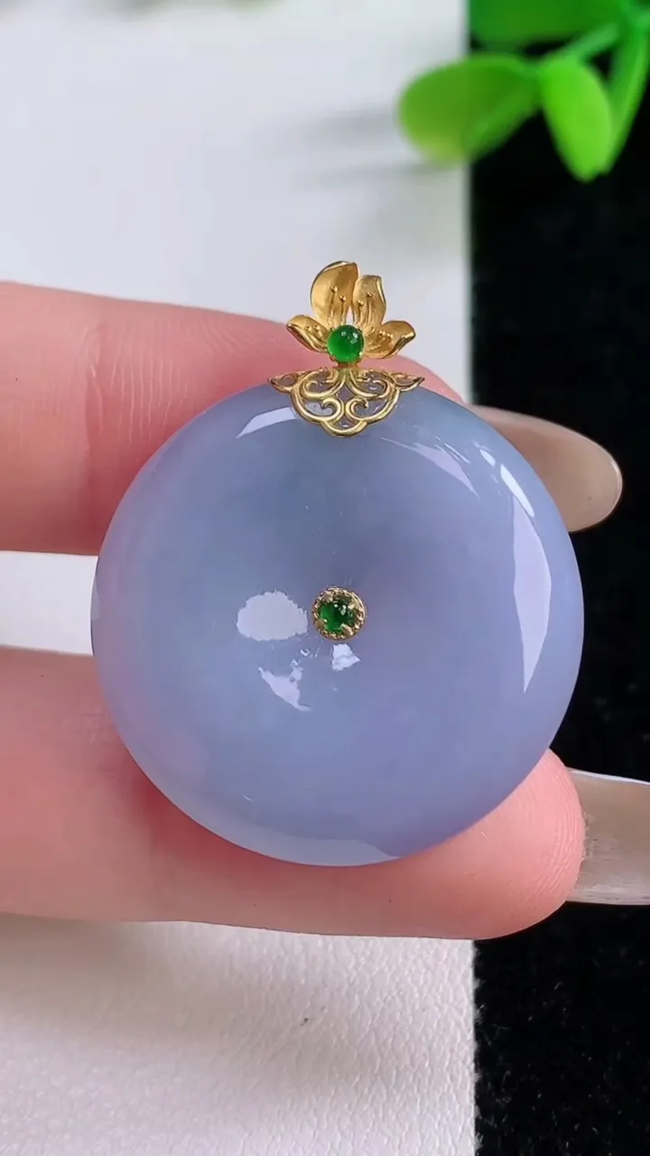 天然A货翡翠18K金紫罗兰平安扣吊坠,尺寸27.4-5.9,重量:10.00g 11月21日