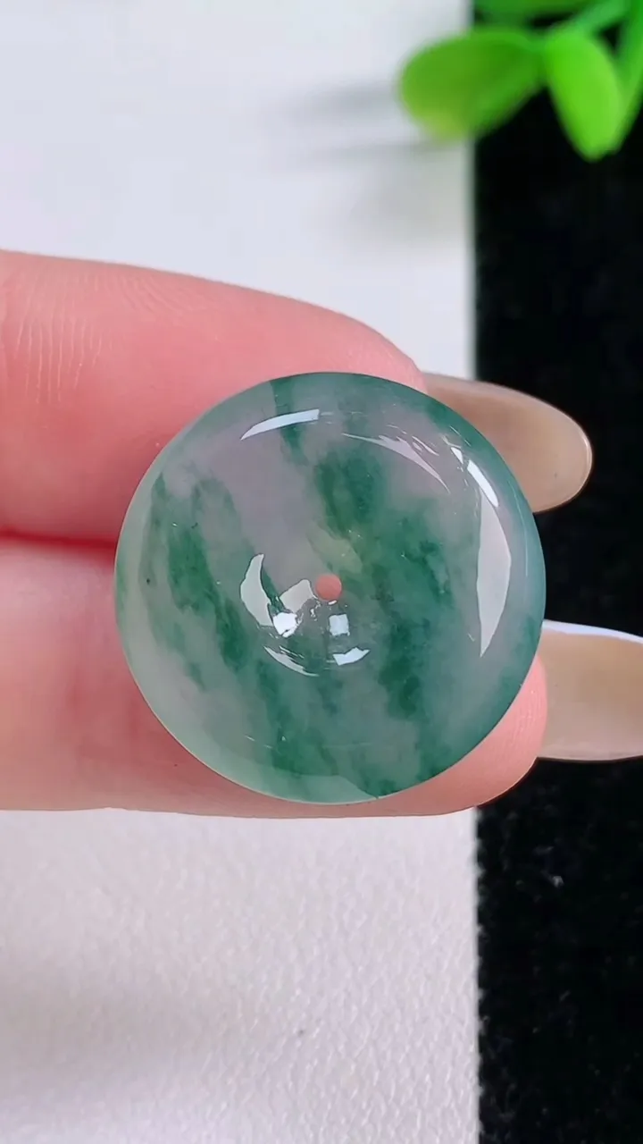 天然A货翡翠冰种飘花平安扣吊坠,尺寸21.6-5.8,重量:6.03g 11月21日