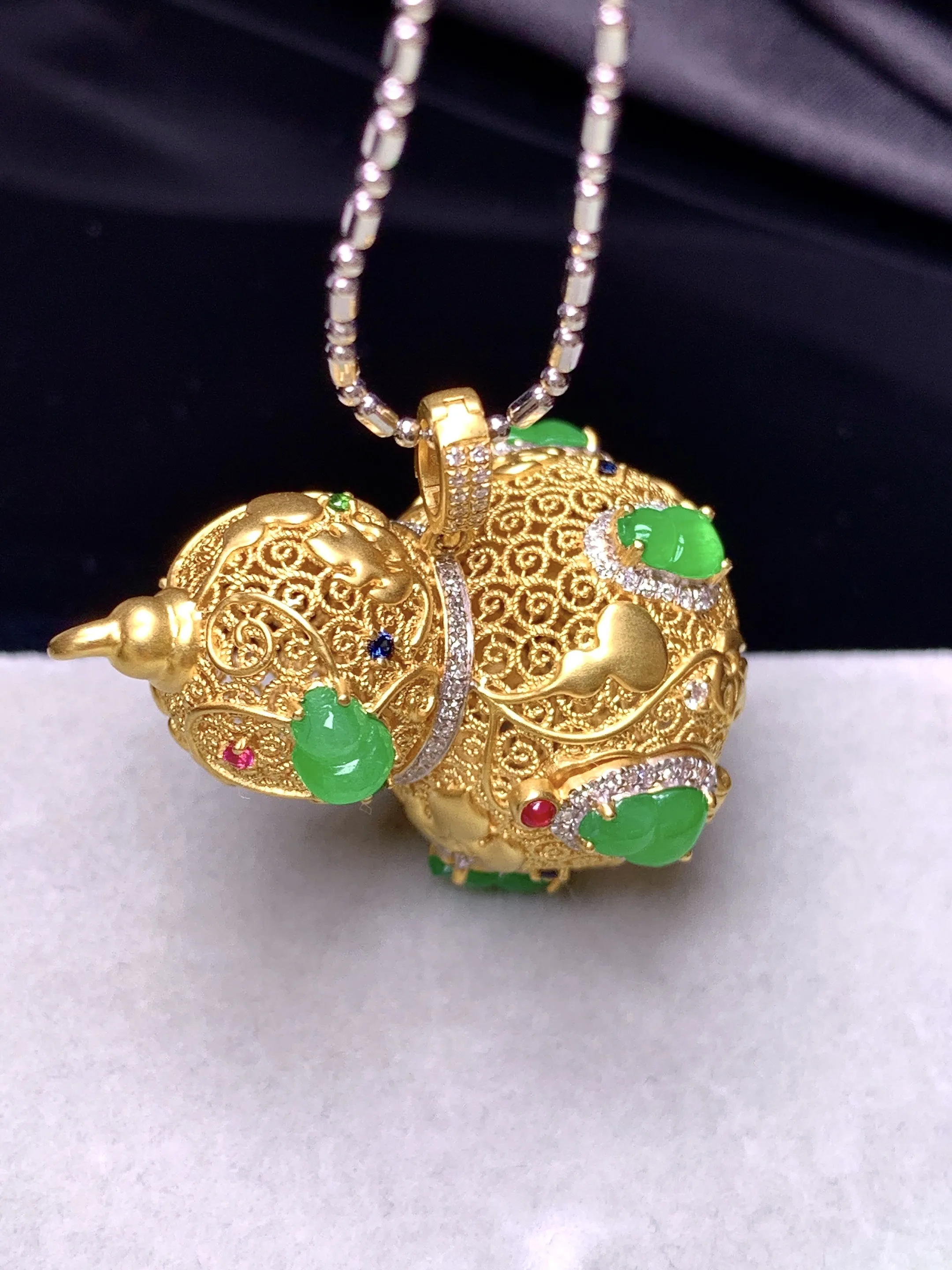 18k金钻镶嵌满绿葫芦吊坠 玉质细腻 色泽艳丽清新 整体尺寸32.5*22.5*22.5