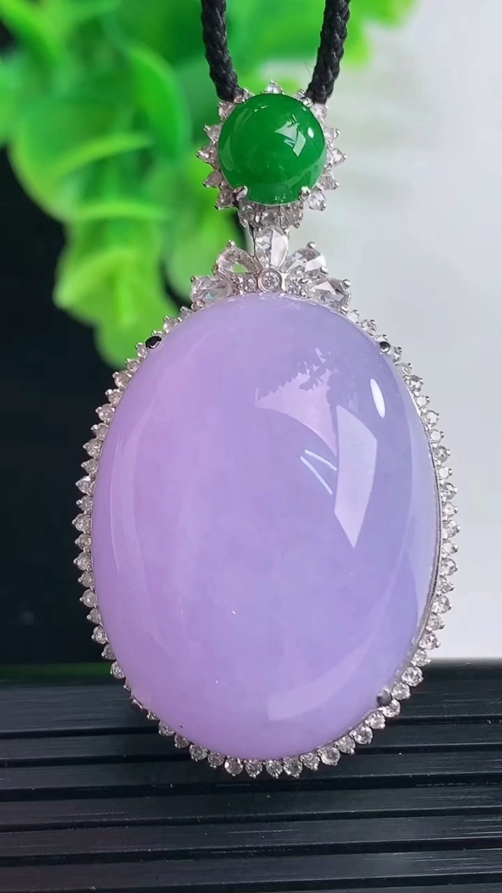 天然A货翡翠18K金紫罗兰蛋面吊坠尺寸48.6-26.6-16.6裸石30.5-22.6重量:20.