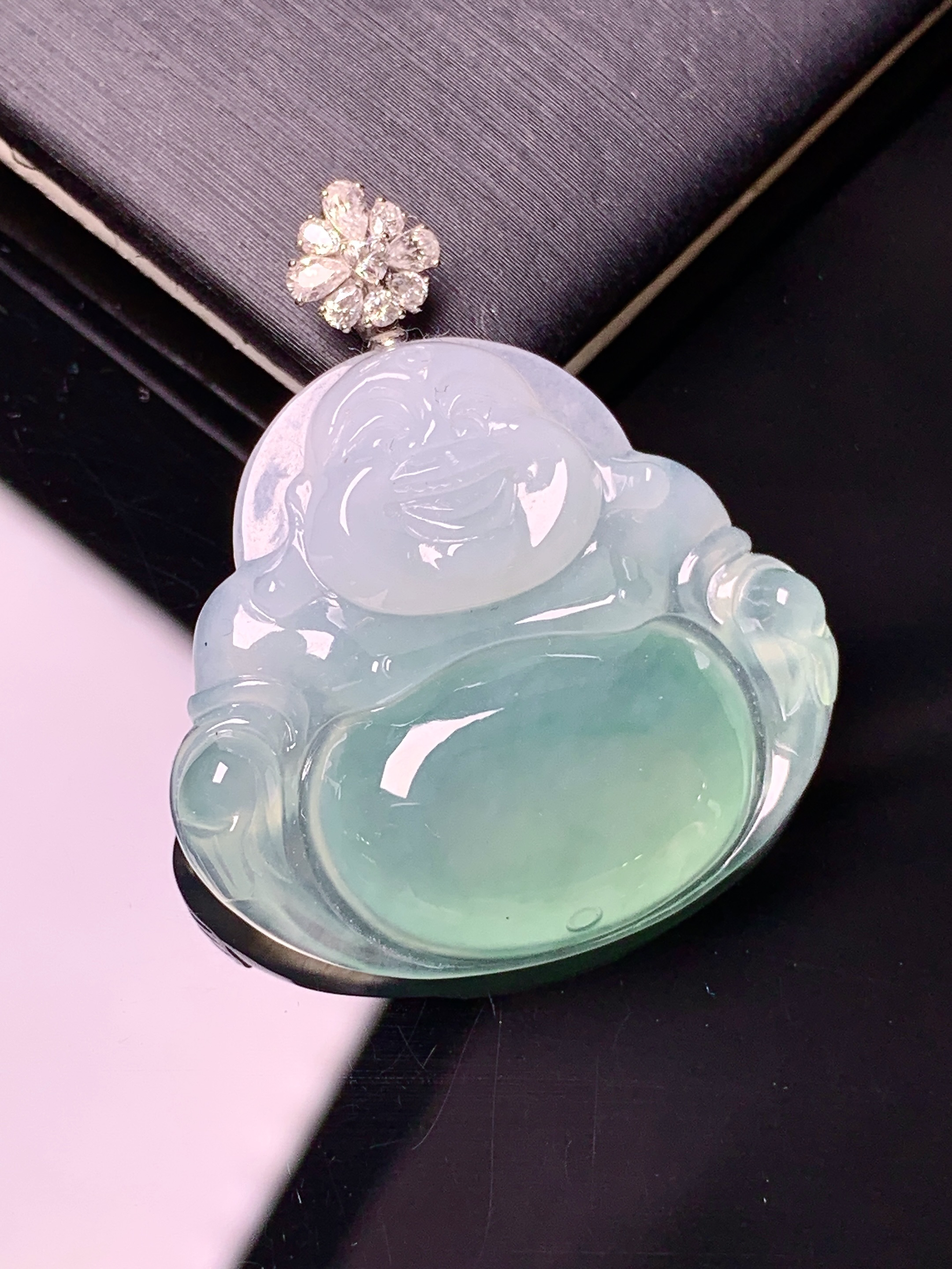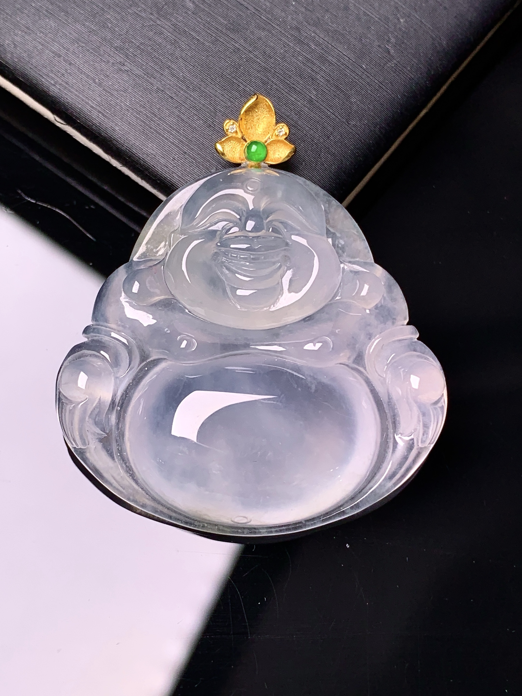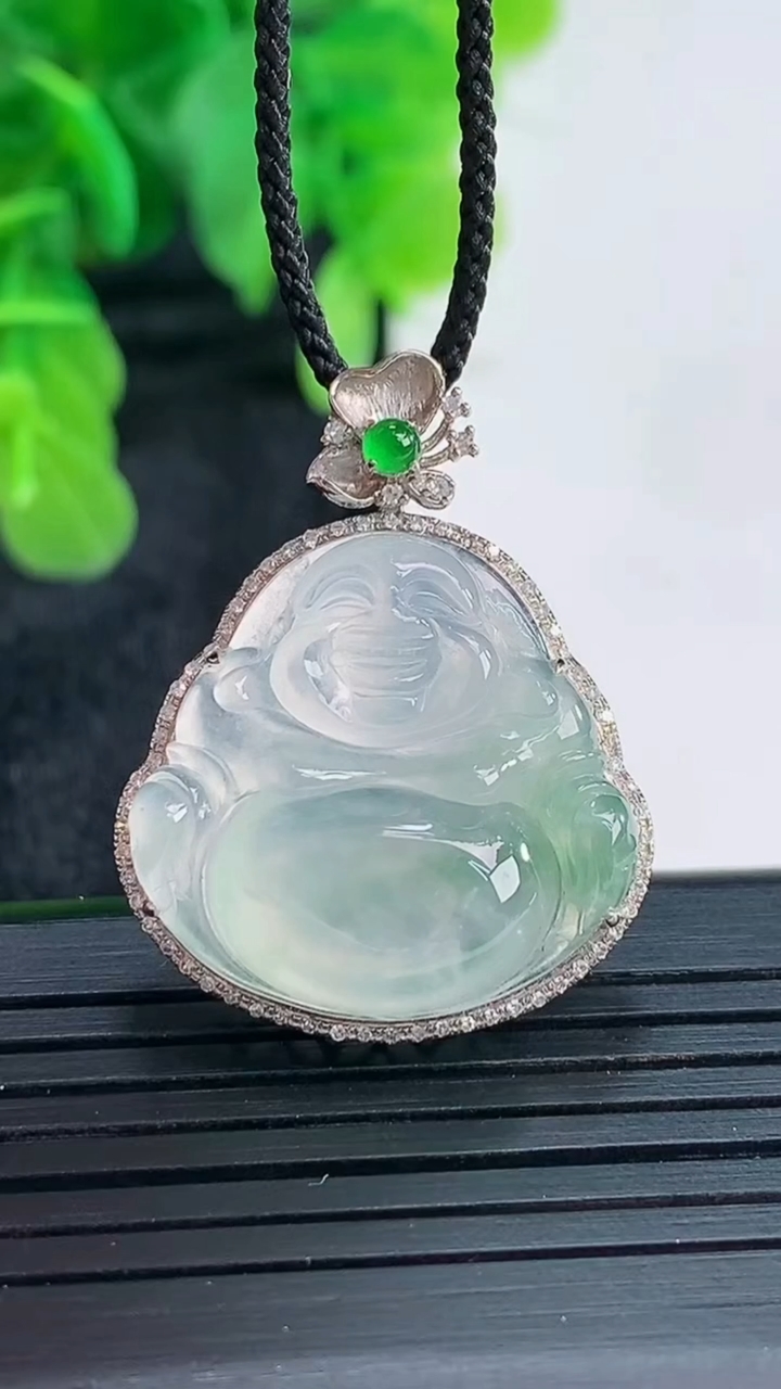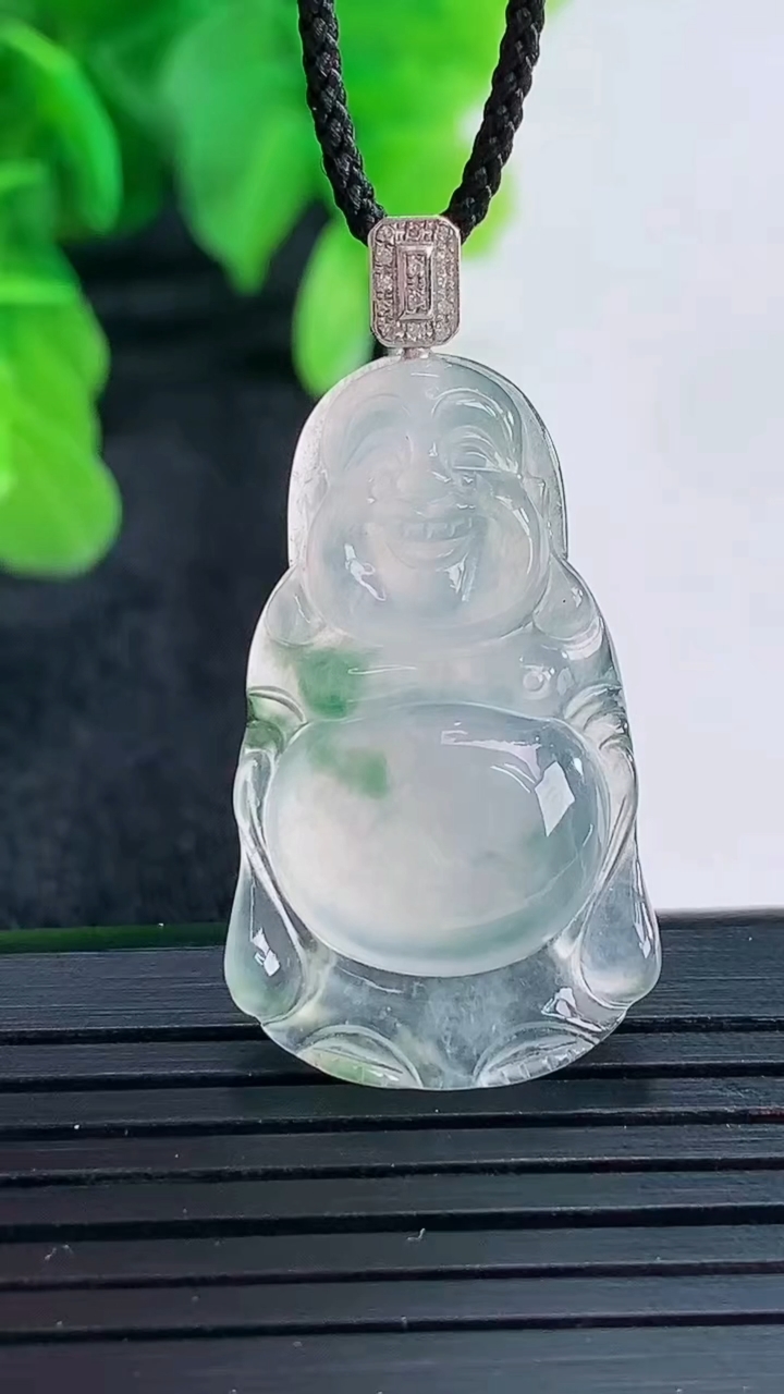 天然A货翡翠种白冰佛公吊坠尺寸23.6-27-4.5重量:4.25g 4月17日