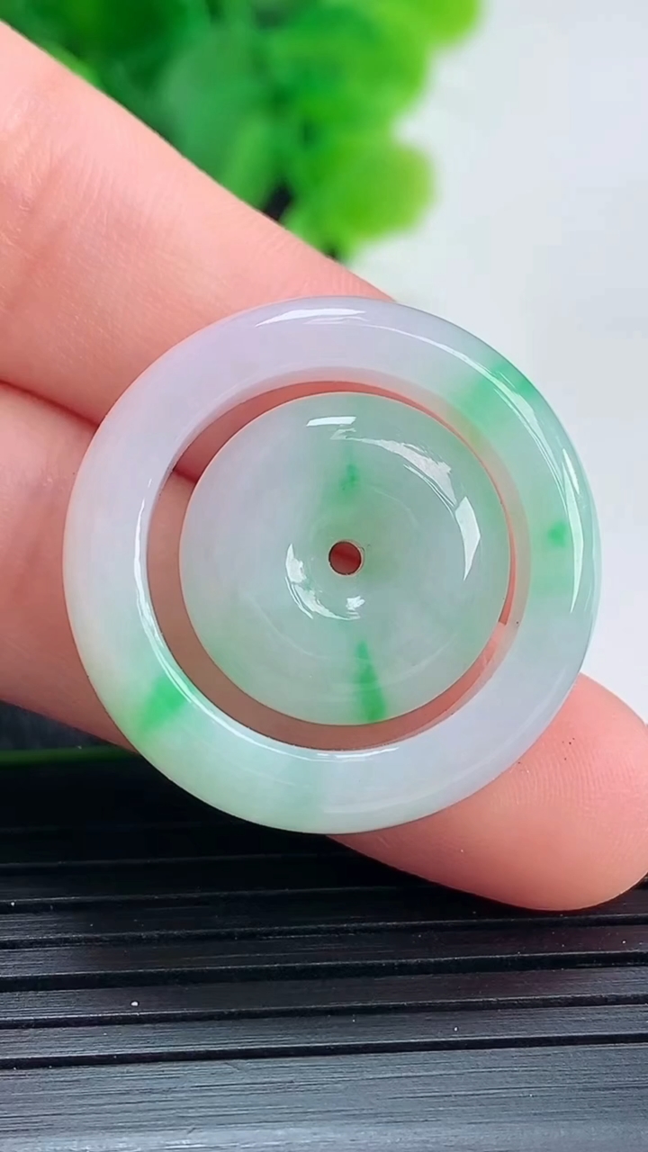 天然A货翡翠冰种飘花平安扣吊坠尺寸24-4重量:4.96g 4月17日
