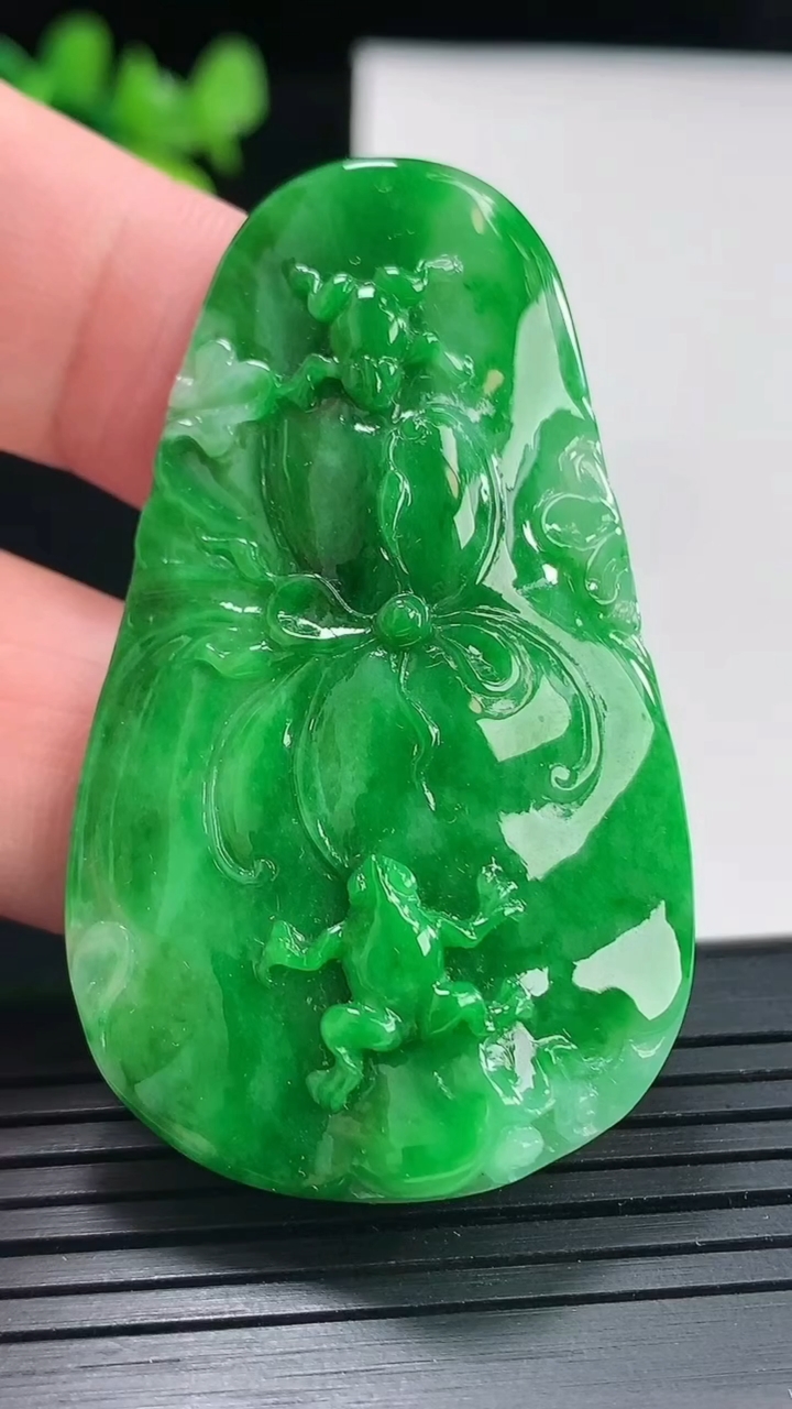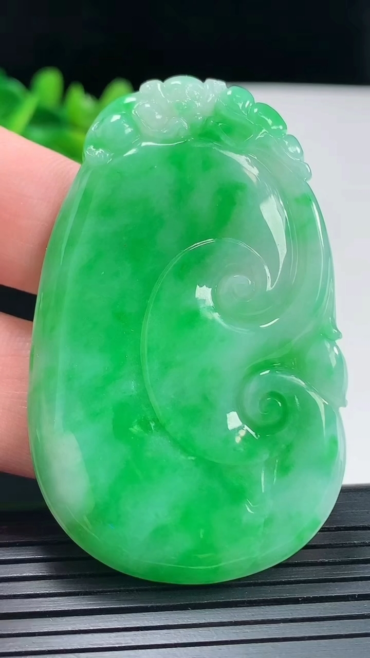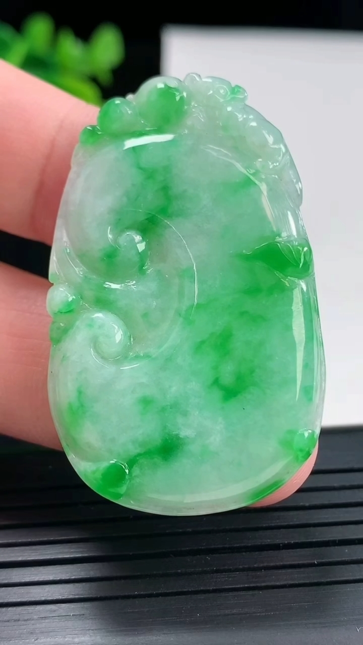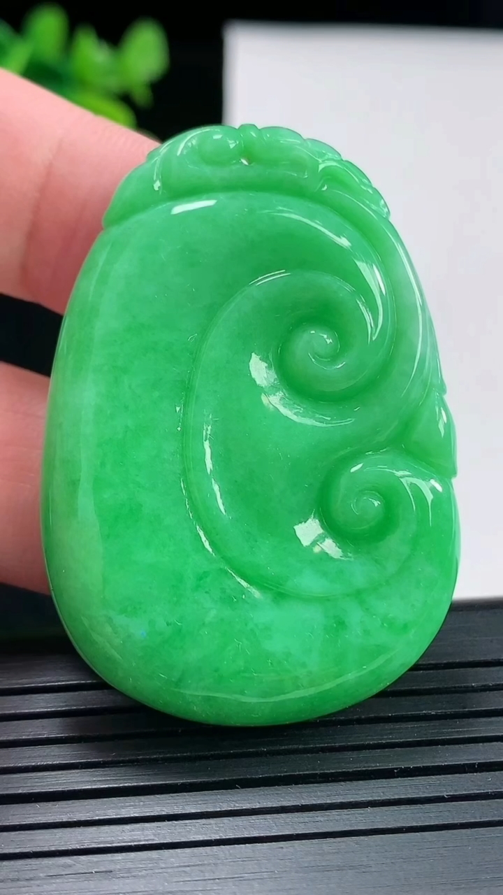 天然A货翡翠无事牌吊坠,尺寸42.5-33.7-11.6,裸石28,重量:12.52g 4月26日