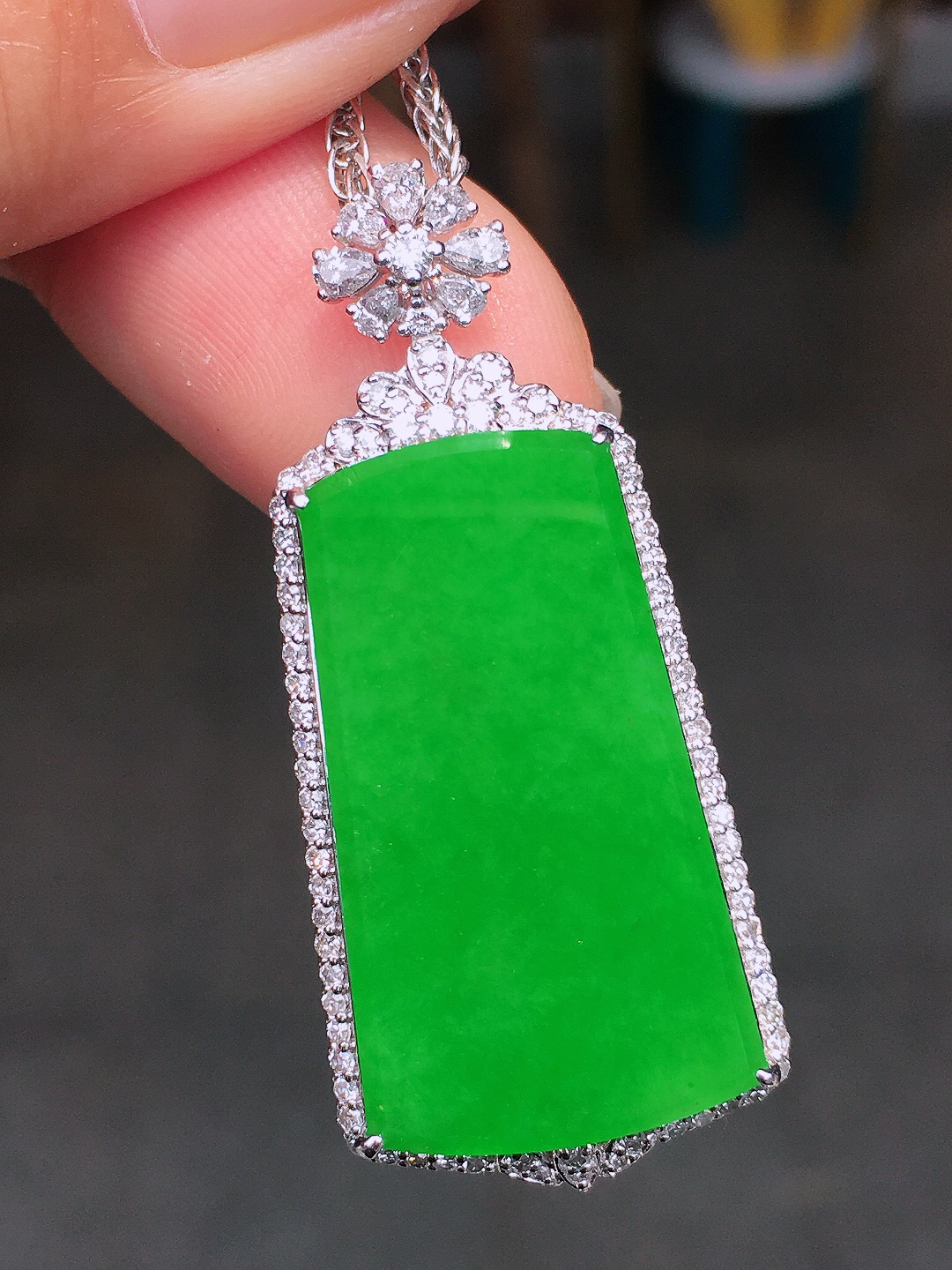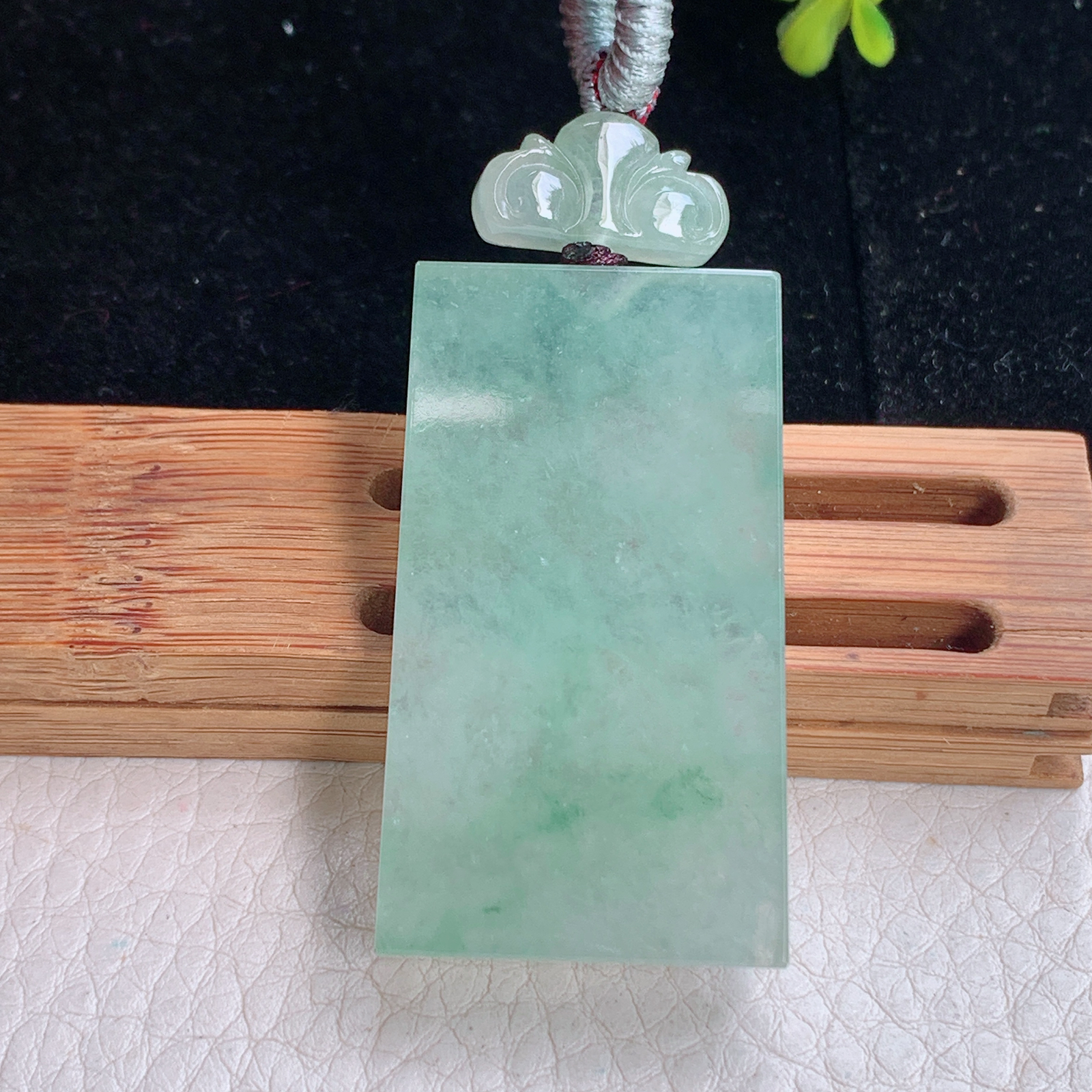 zz3实拍44.8*25.5*5.8天然缅甸翡翠晴绿平安无事牌吊坠 冰透素面牌