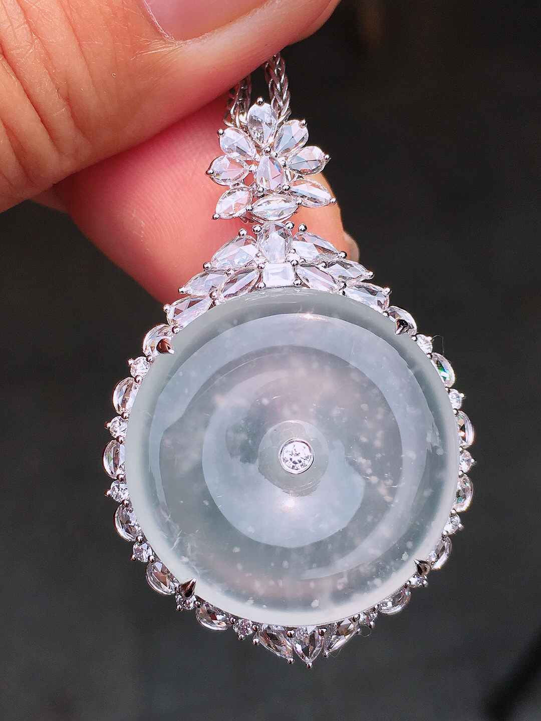 zz3实拍42.5*5.9天然缅甸翡翠飘花大平安扣吊坠 怀古玉扣毛衣坠