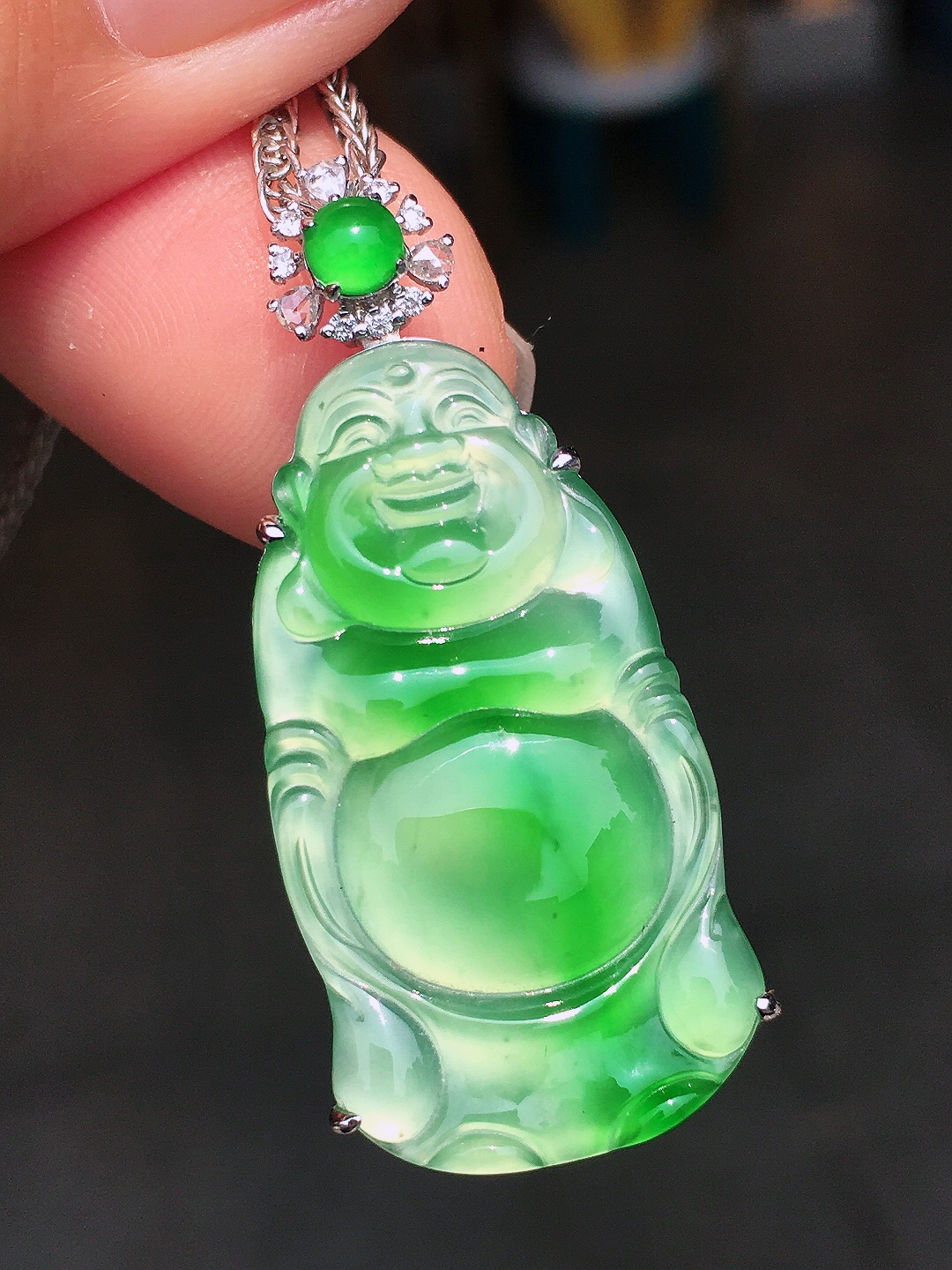 zz3实拍35.6*38.5*7天然缅甸翡翠冰透大佛公吊坠 镶金扣白月光弥勒佛像项坠