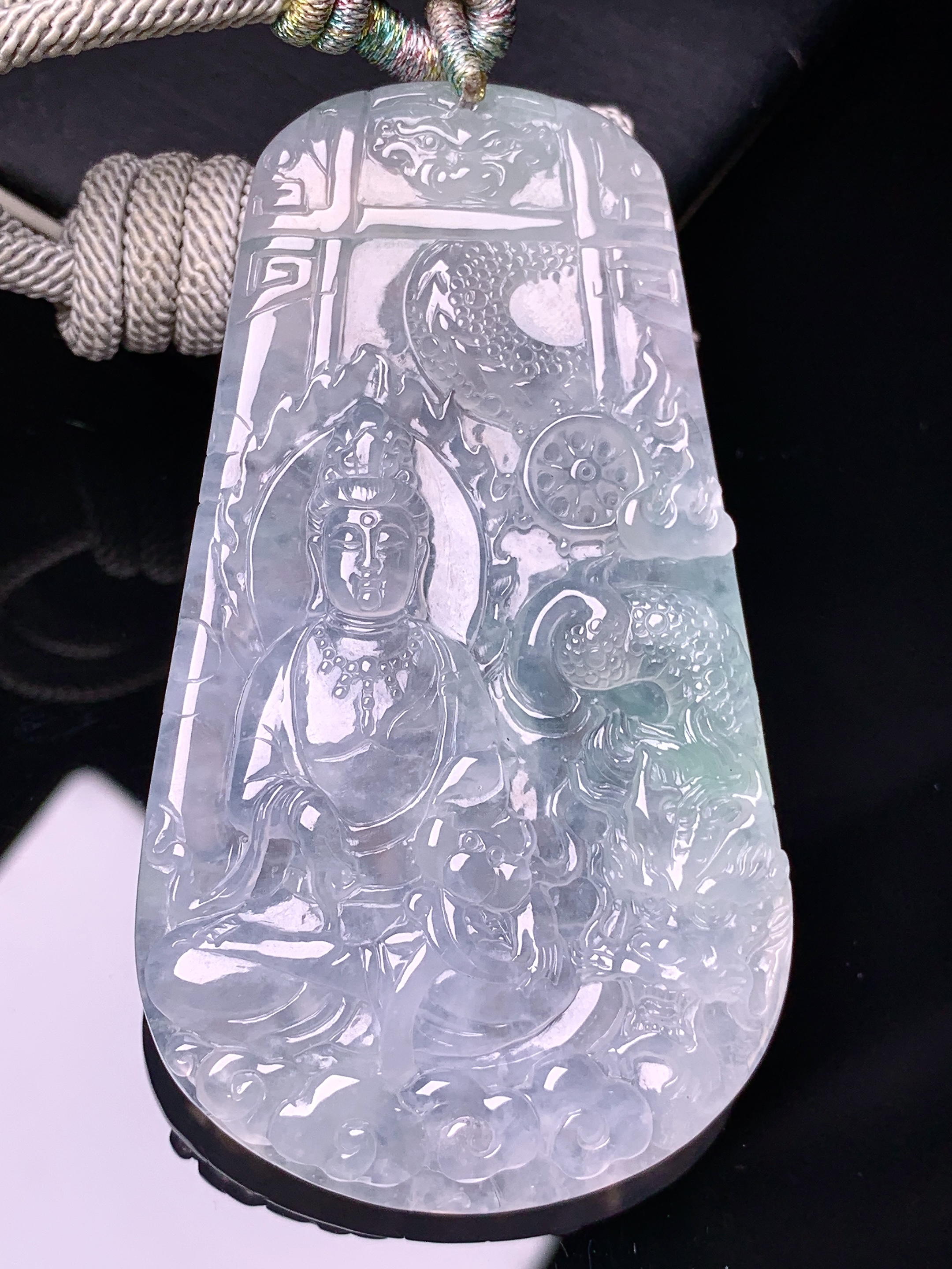 天然A货翡翠白冰逍遥佛吊坠,尺寸42.7-25-8,重量:15.07g 4月26日