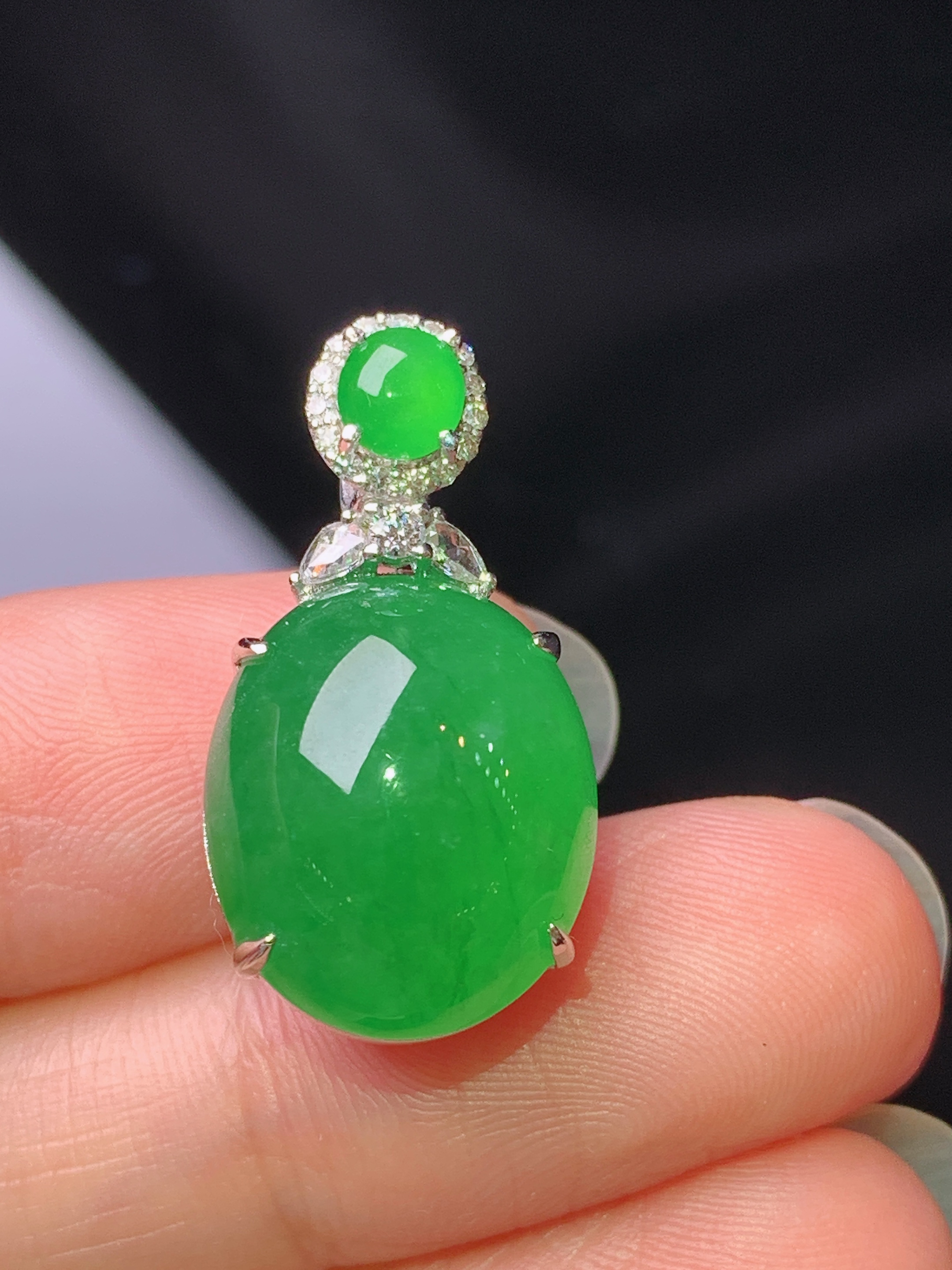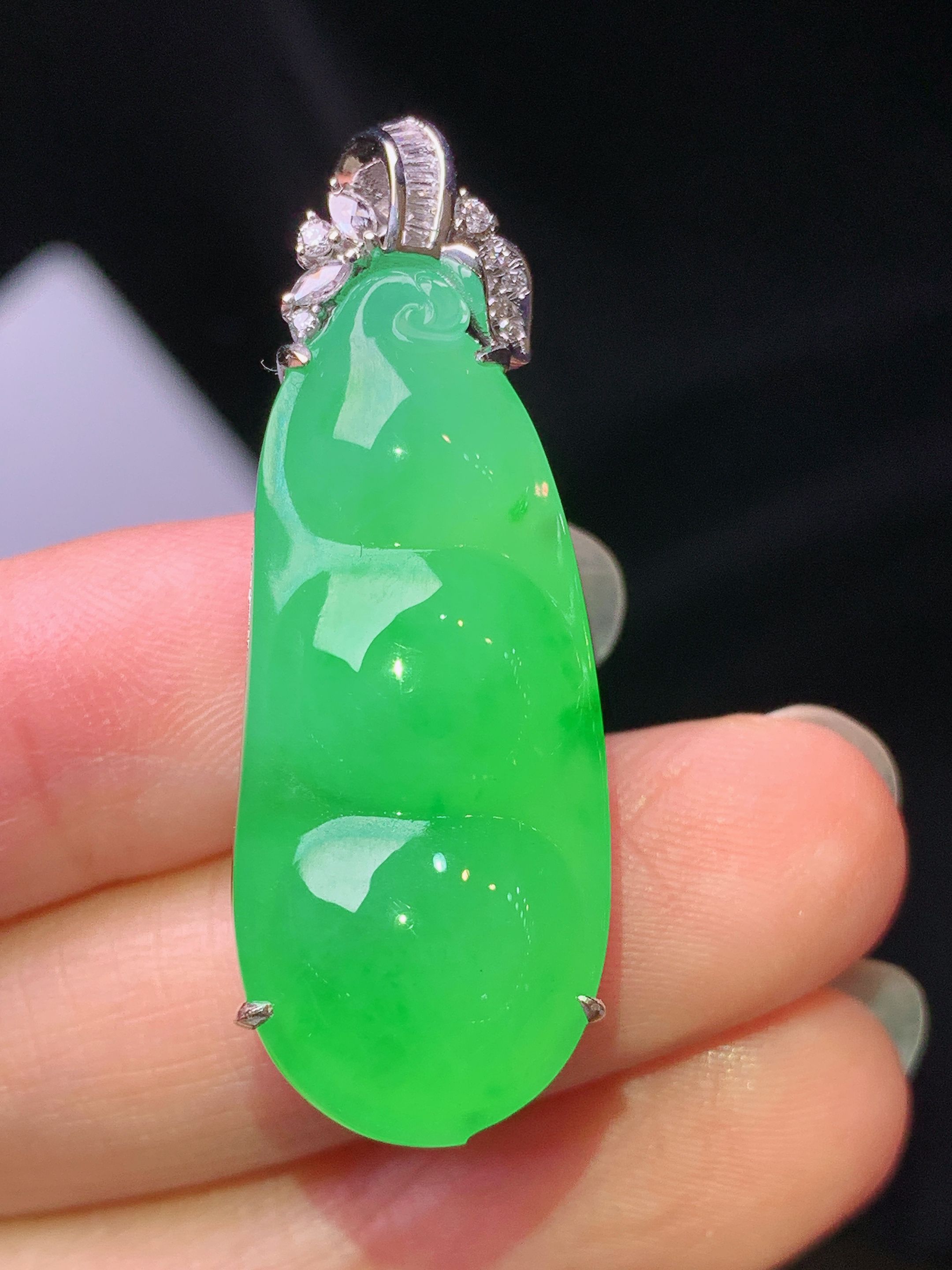 天然A货翡翠葫芦吊坠,尺寸33.6-19-11.6,裸石15.5-13.3,重量:6.49g 4月2