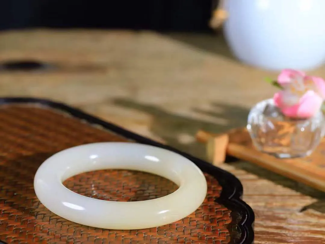 (柔情似水.手镯) 收藏级和田玉白玉手镯,玉质温润细腻,镯型饱满圆润,优雅知性,姽婳于幽静兮,又