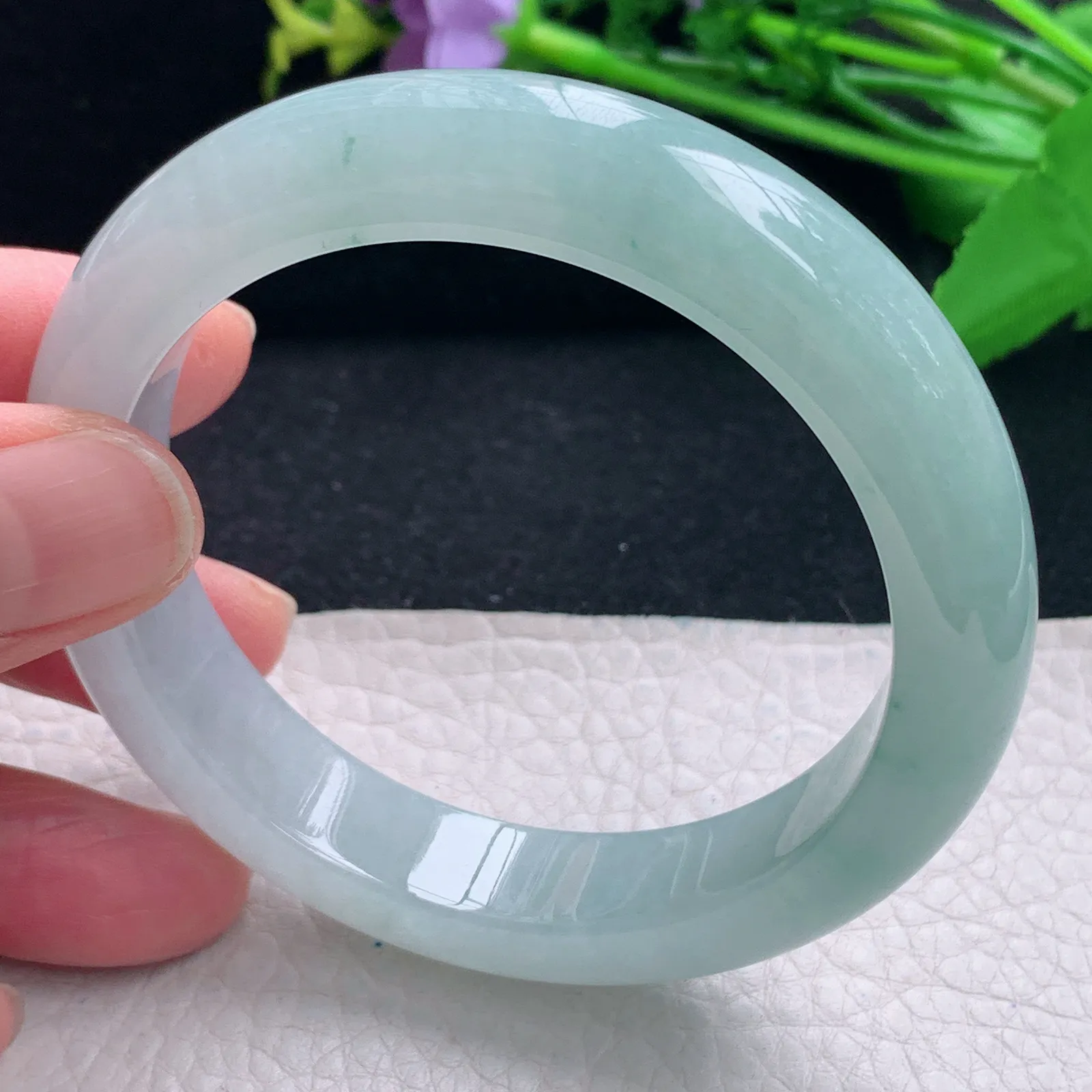 r自然光57*11美人镯 缅甸翡翠a货冰纯浅绿圆条玉手镯 玉手环
