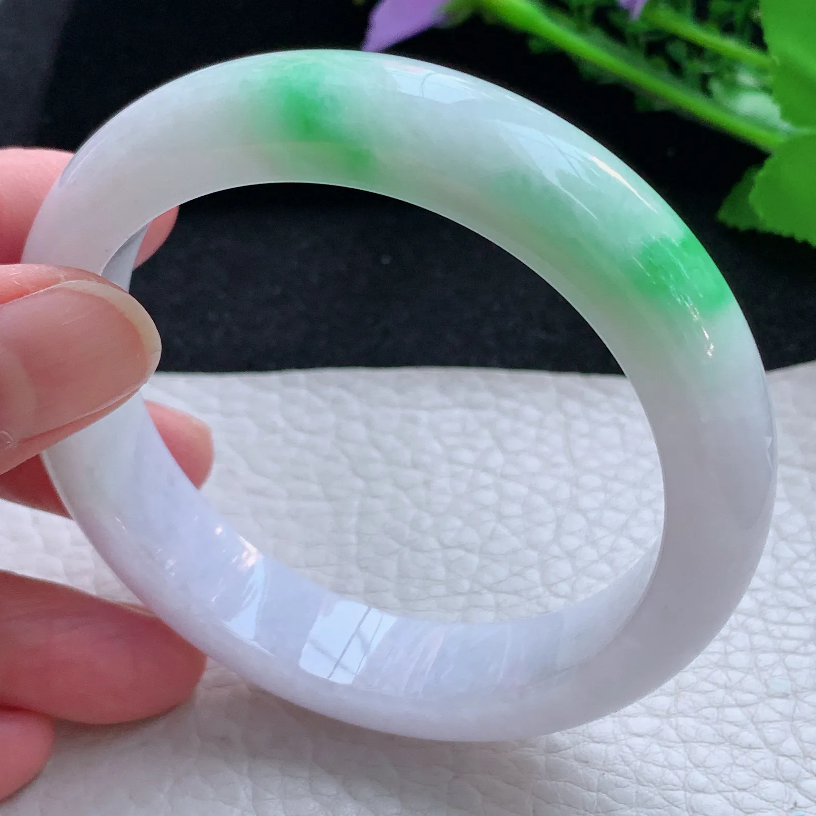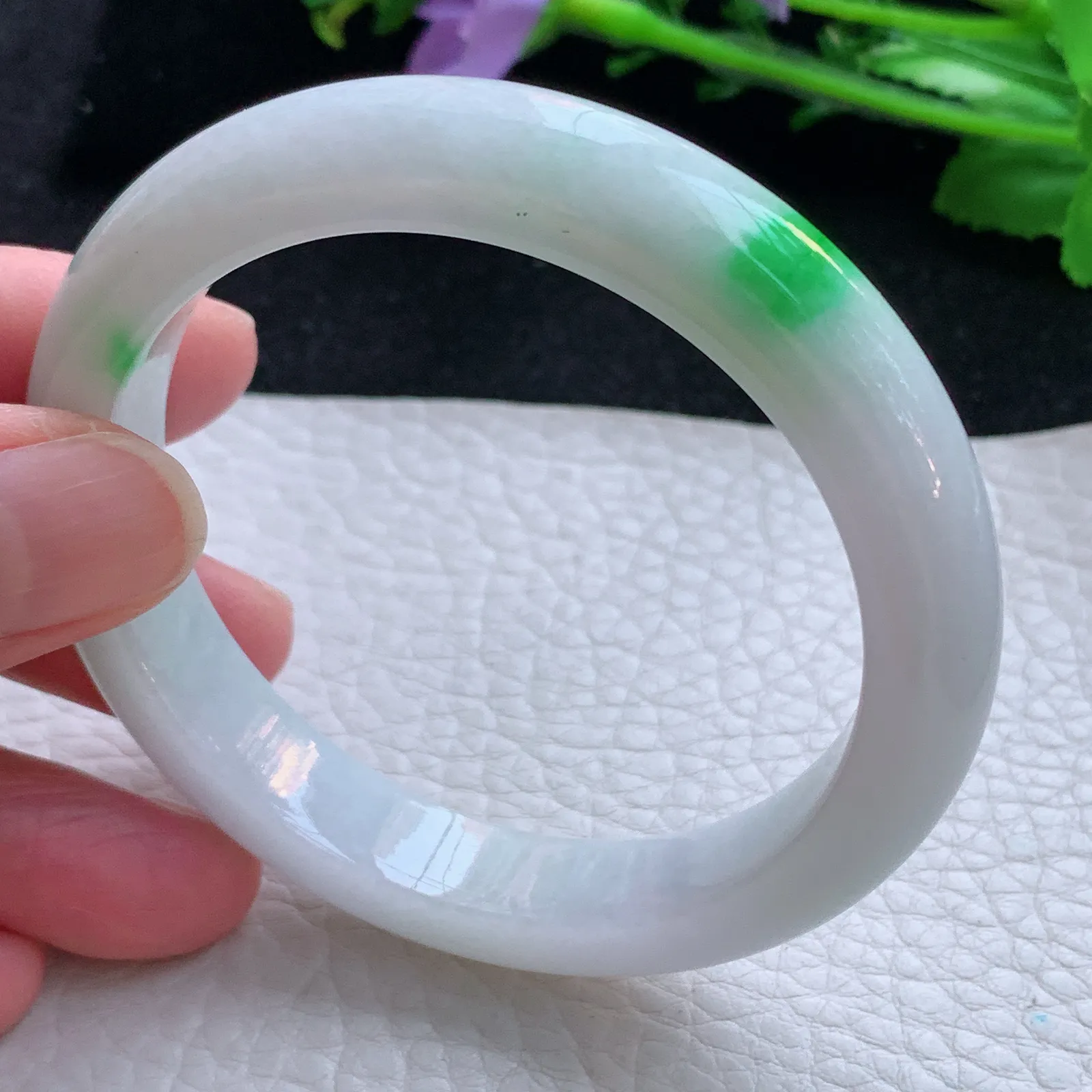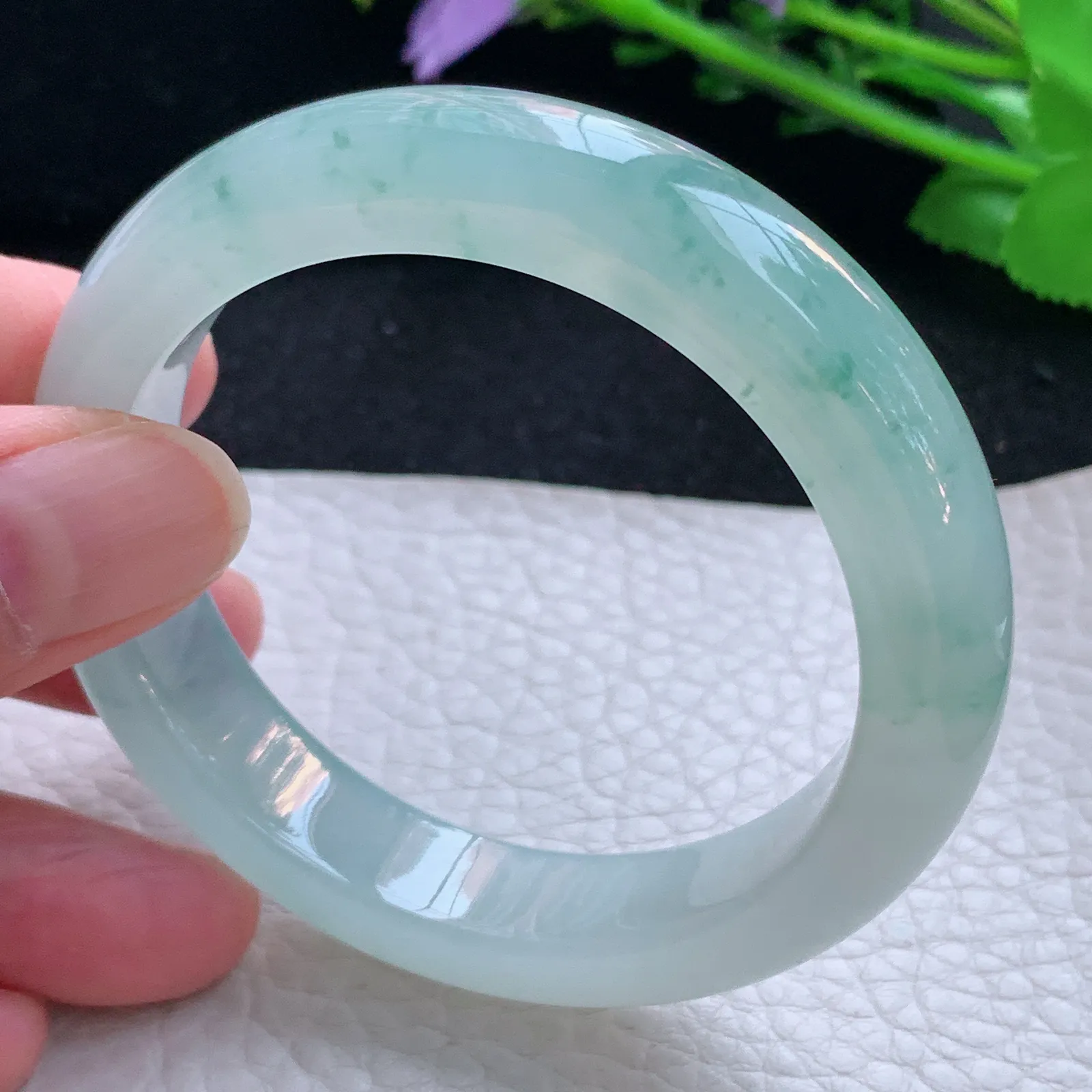 【翡翠名称】老种飘绿花54.8正圈口翡翠手镯 【翡翠尺寸】54.8*11.3*9.5mm适合53.8