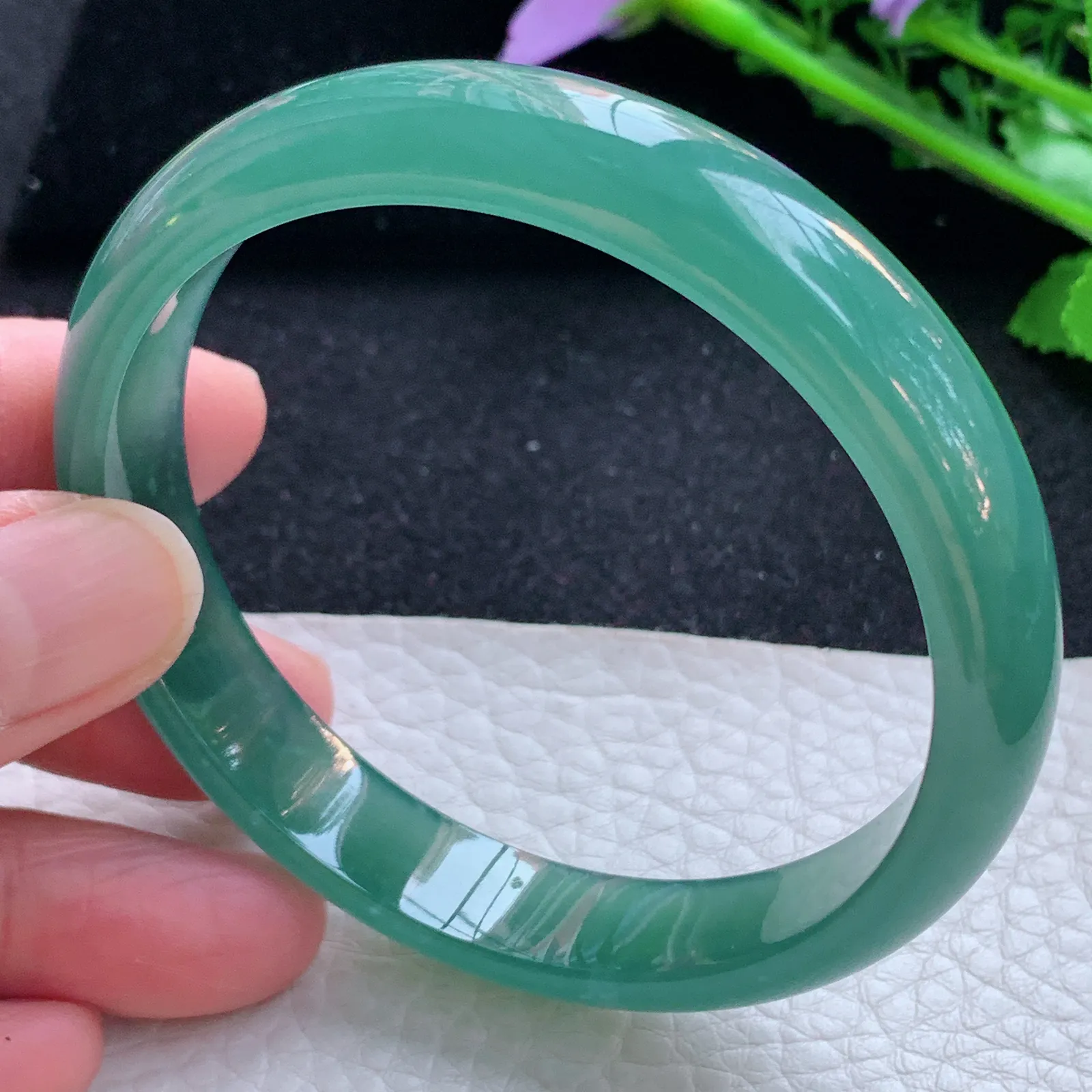 js自然光56*11.6*11.3胖圆镯 天然缅甸翡翠a货满绿圆条玉镯子 玉手环