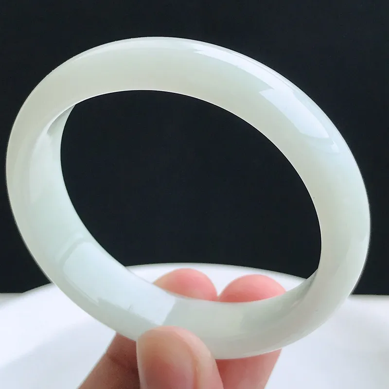 自然光拍摄天然翡翠A货淡紫好种水54mm手镯 47.27克