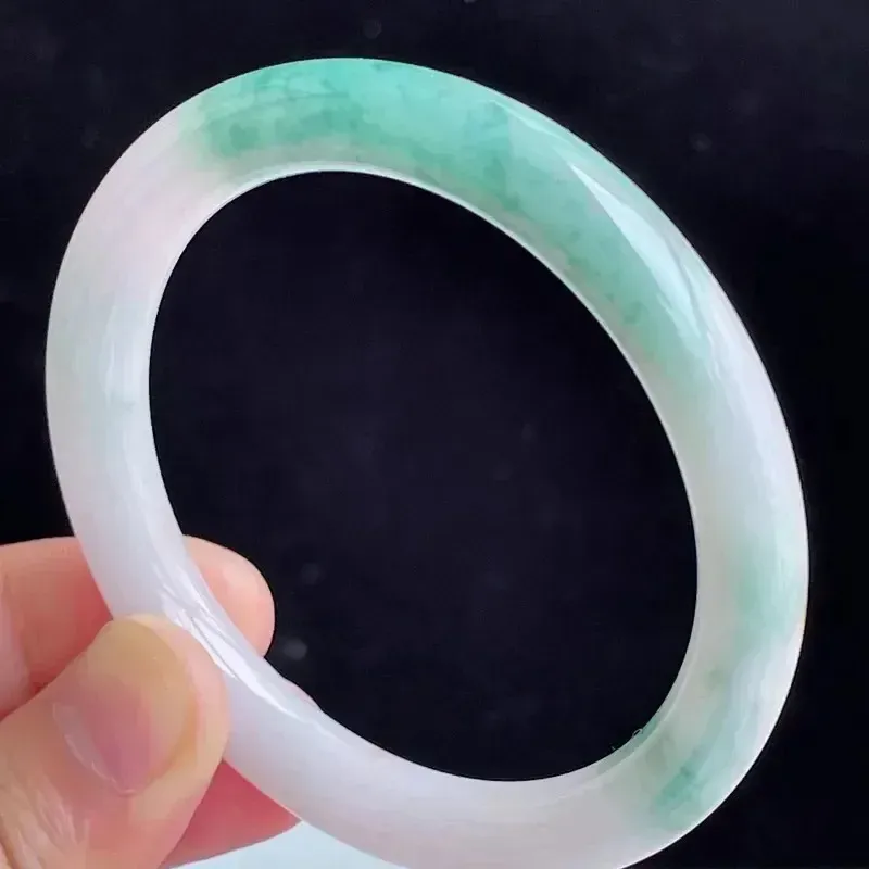 57圈好种水玉石天然翡翠A货水润有种有色飘绿手镯50.07g