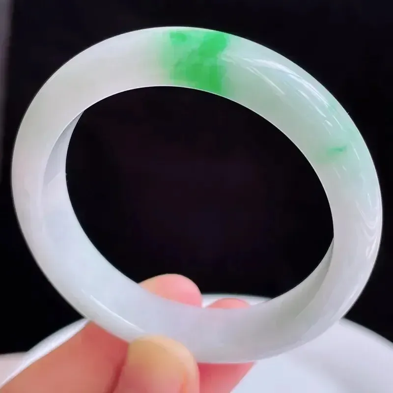 53.4圈有种有色天然翡翠A货飘绿玉手镯好种水水润手镯49.37g