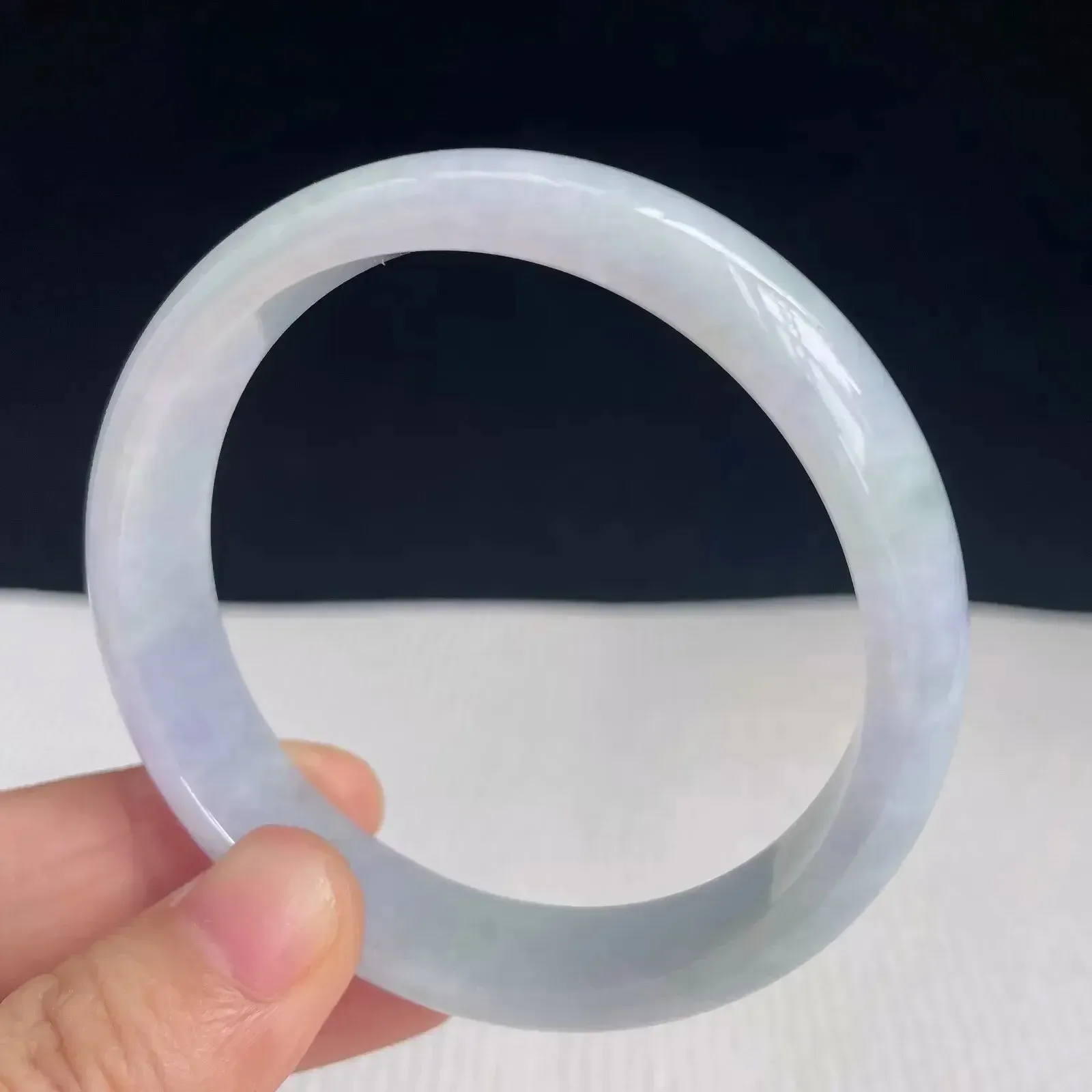 54mm天然翡翠A货淡紫玉手镯42.07克