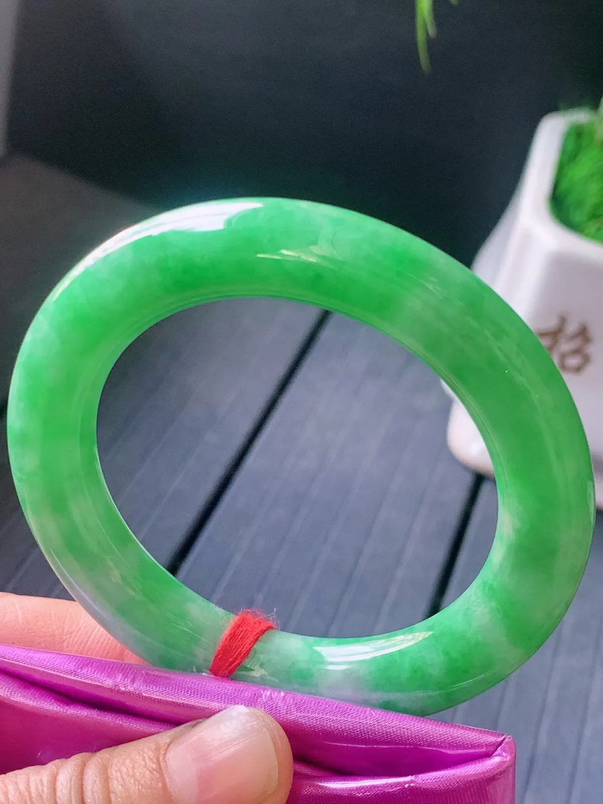 实拍翡翠A货55.5/12.5/9.3老坑秀气精美飘绿手镯宽边翡翠玉镯女款百搭