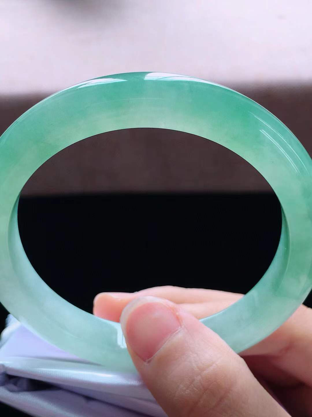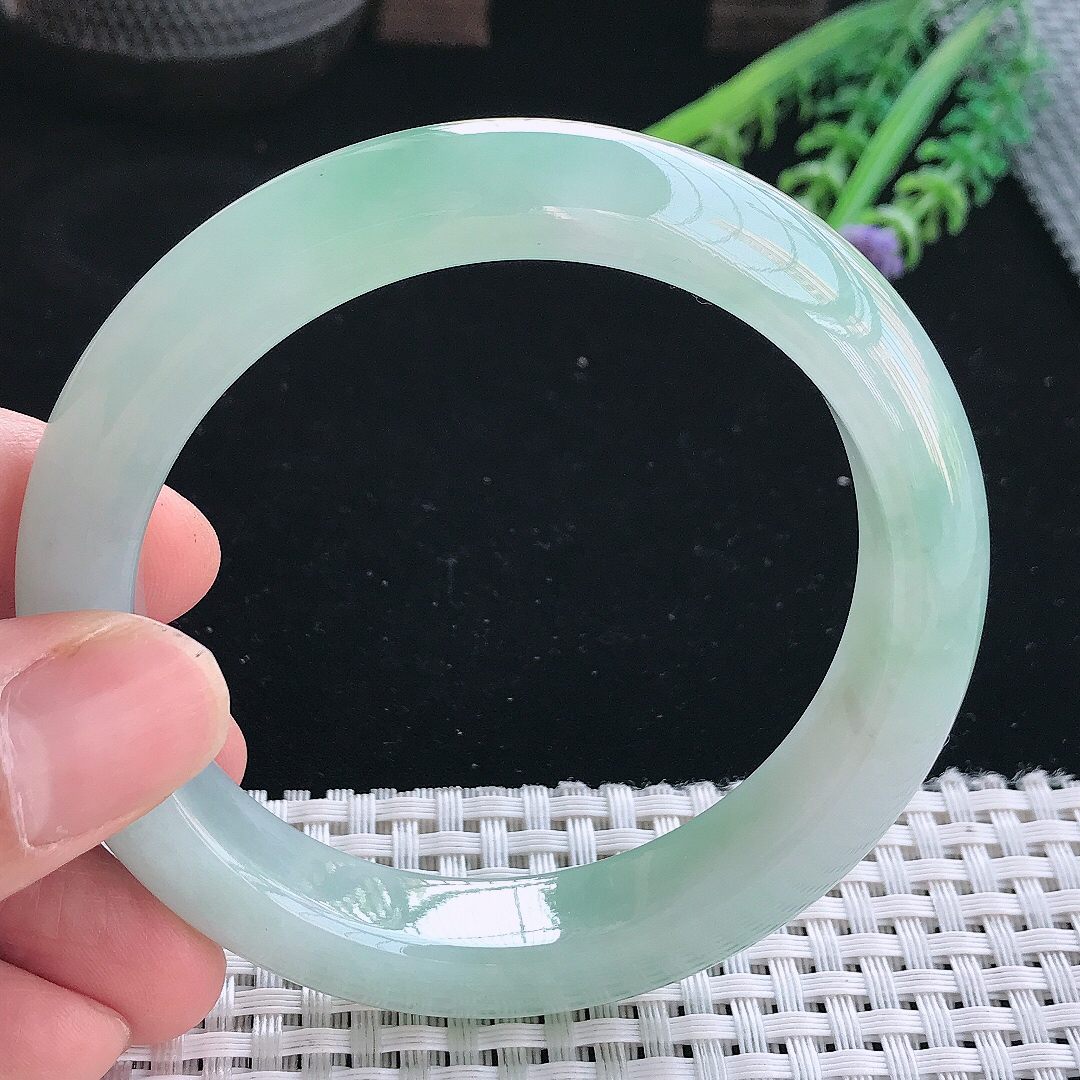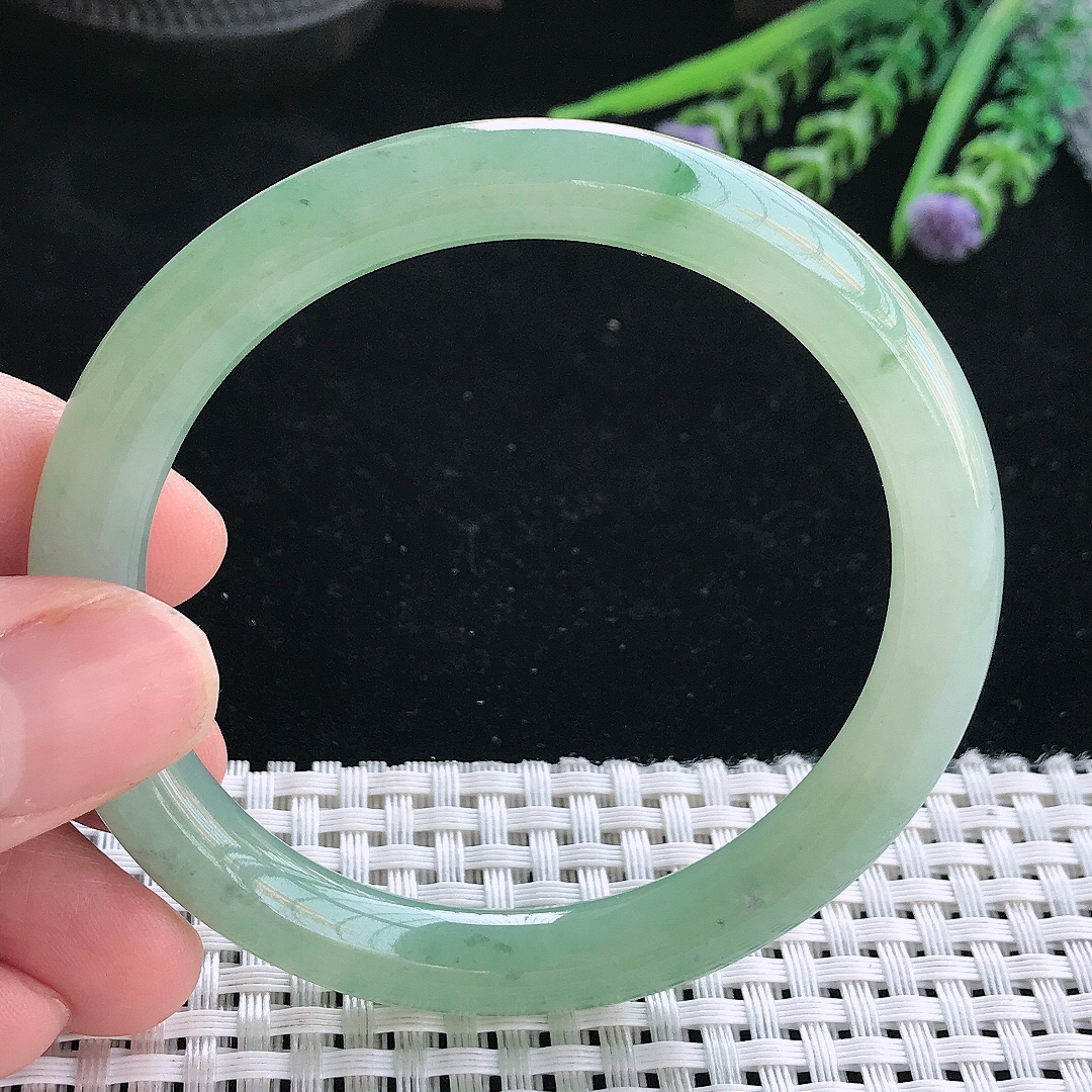 实拍天然翡翠58.5/12.7/9.3老坑冰胶冰晴绿手镯翡翠玉镯手环
