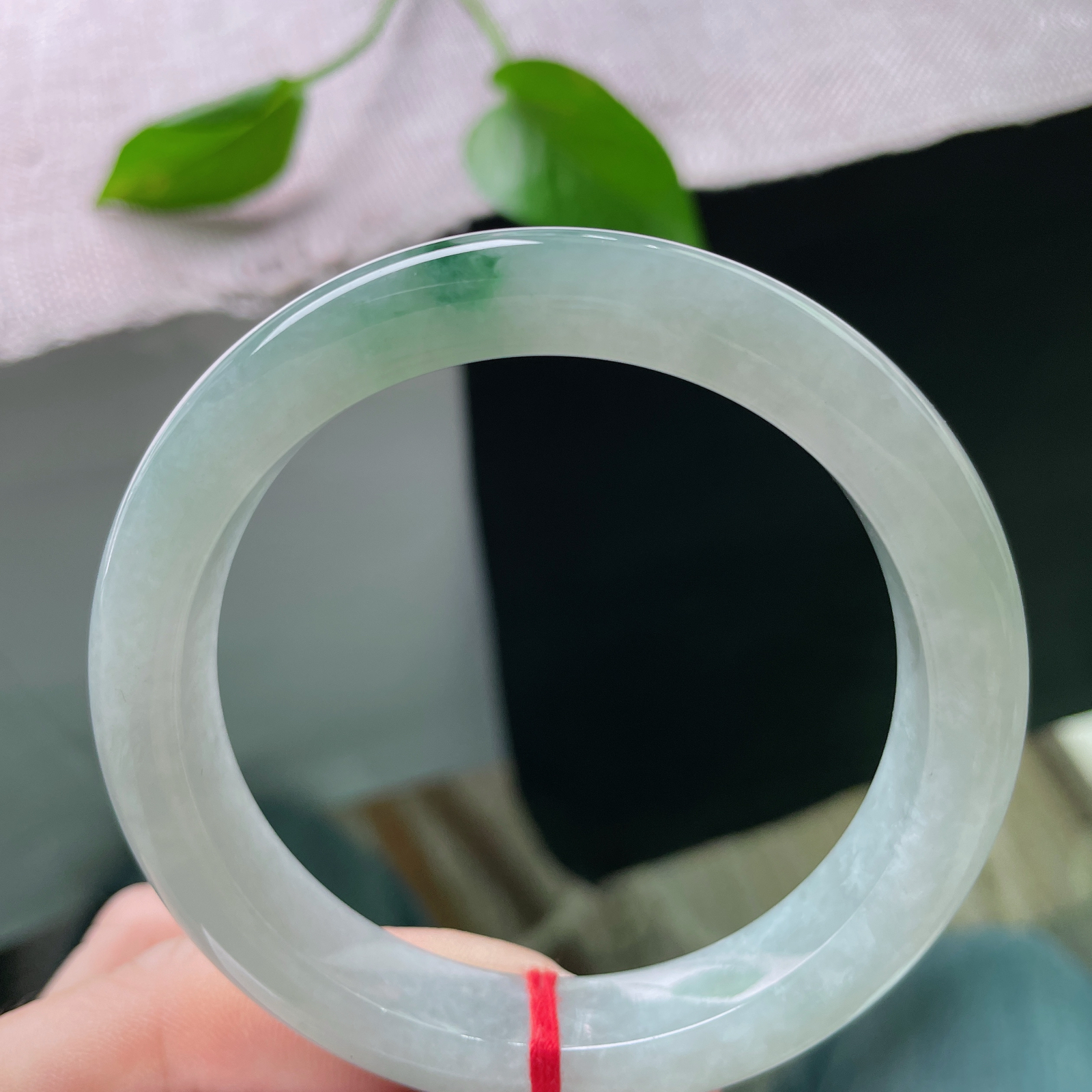 【翡翠名称】老坑冰种冰飘花54.3正圈口手镯 【翡翠尺寸】54.3*10.8*8.2mm适合53-5